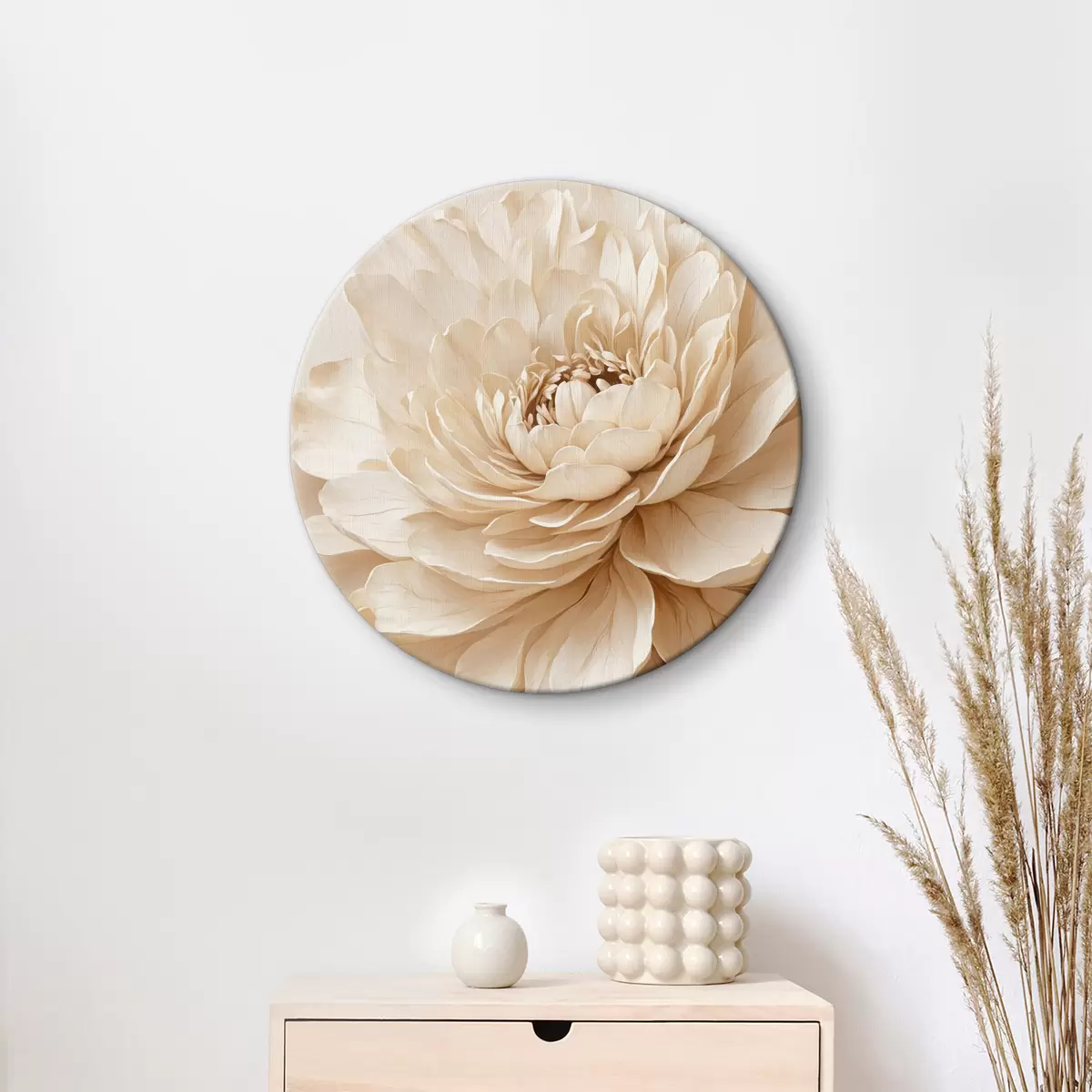 Ronde schilderijen Beige bloem op beige achtergrond Nr r40331