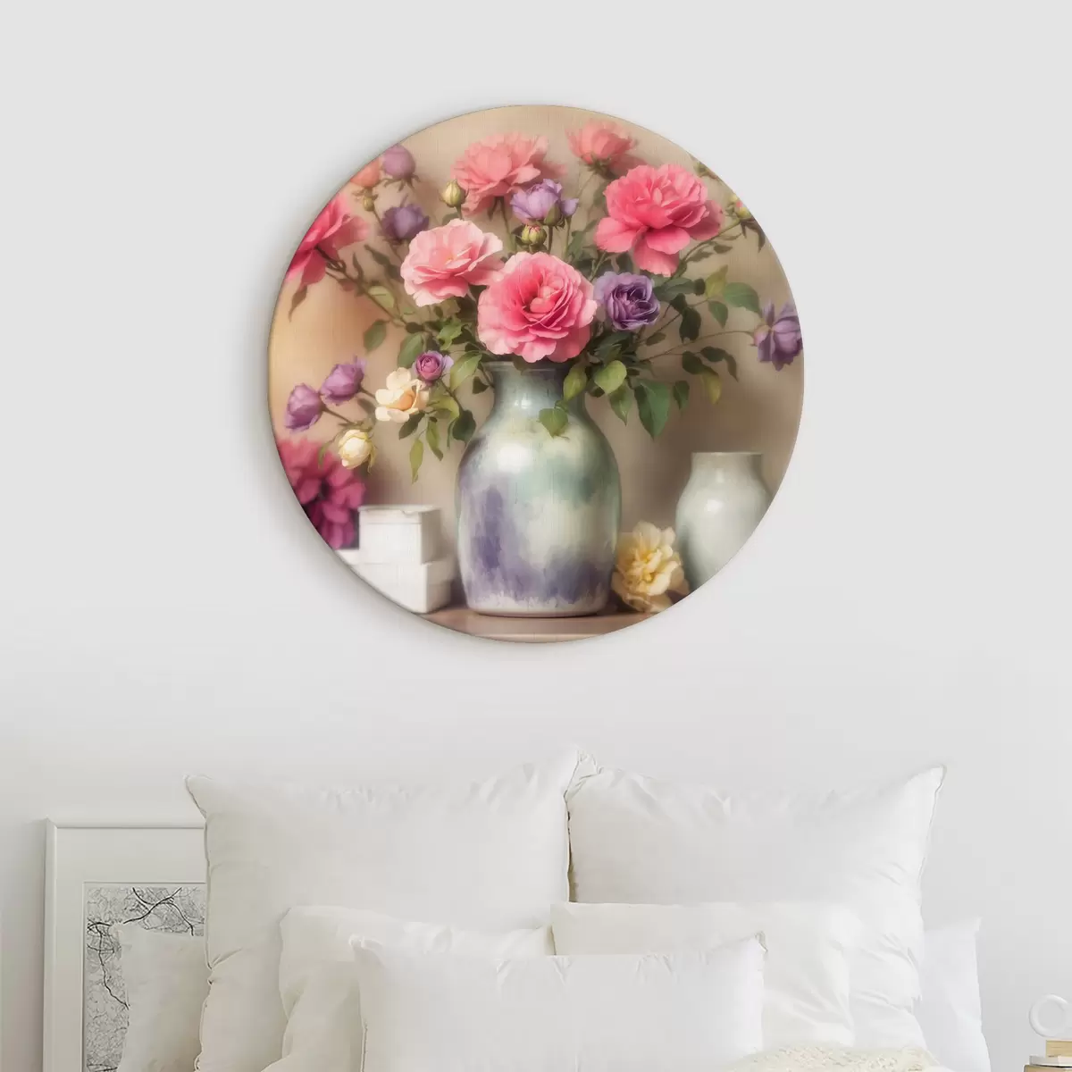 Ronde schilderijen Bloemen in vaas op tafel Nr r40333