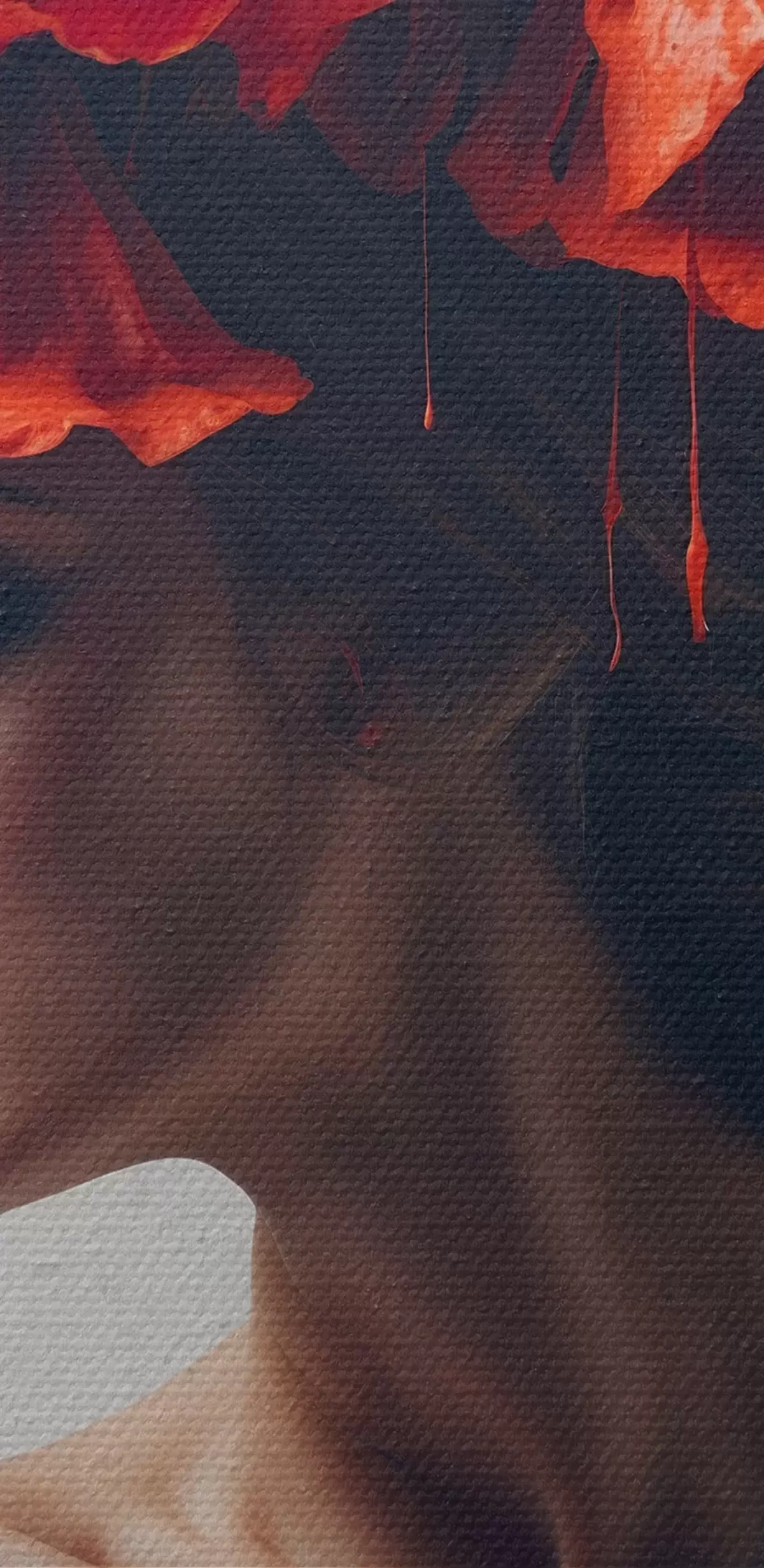 Ronde schilderijen Meisje met klaprozen op haar hoofd Nr r40338