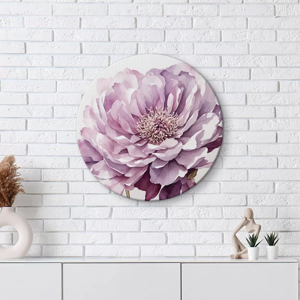 Ronde schilderijen Paarse bloem op witte achtergrond Nr r40347