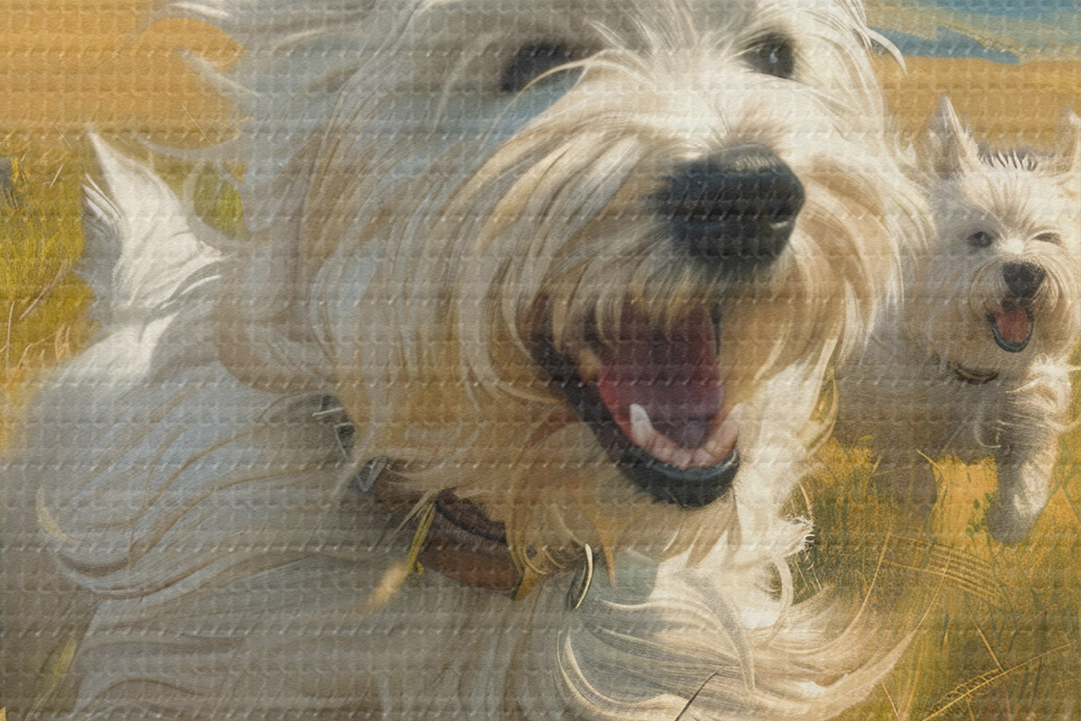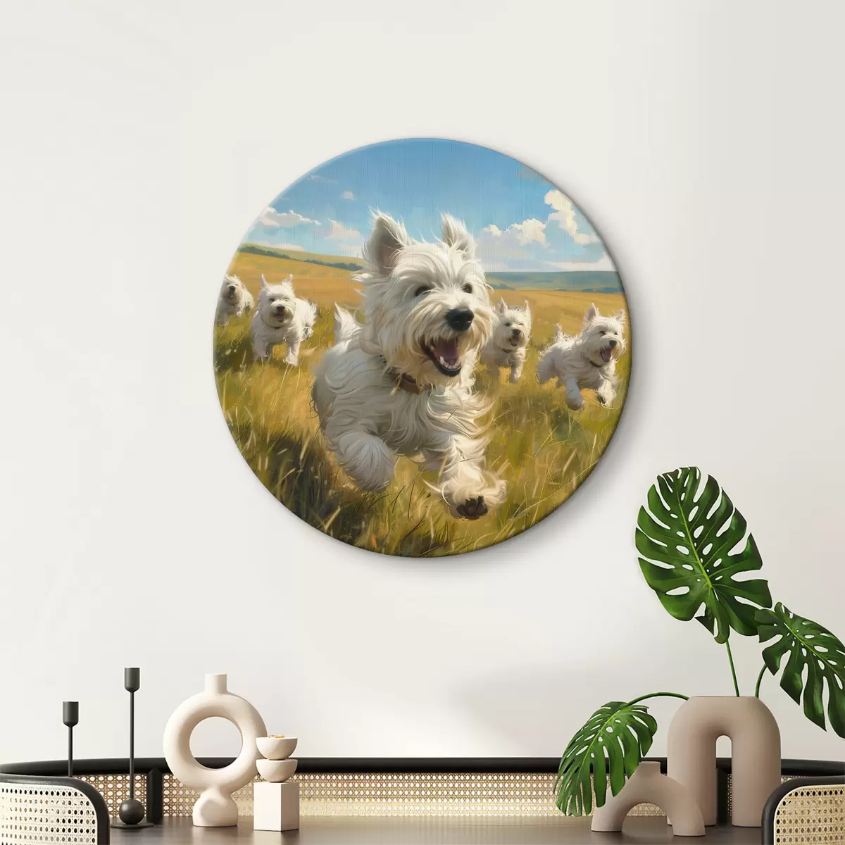 Ronde schilderijen Kleine puppy's in het veld Nr r40358