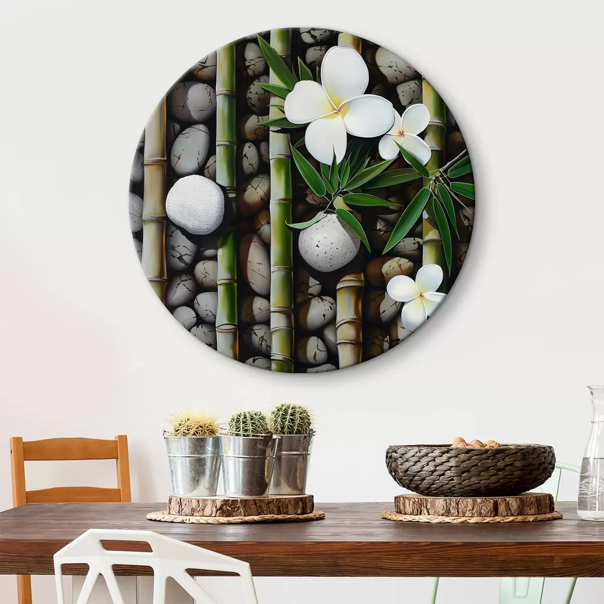 Ronde schilderijen Bloemen en bamboe Nr r40367