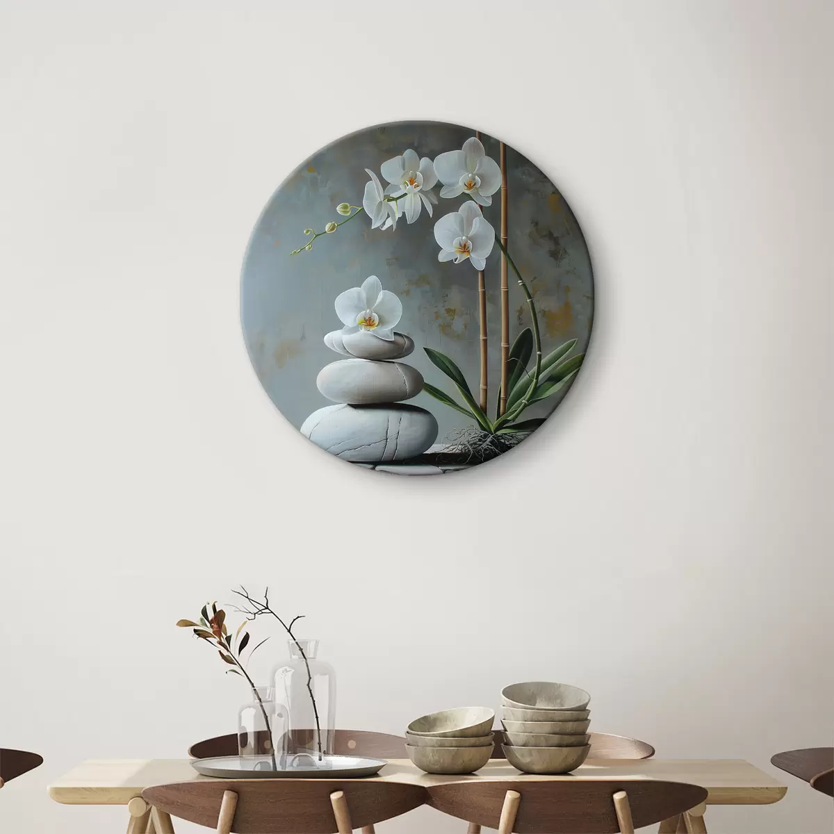 Ronde schilderijen Orchidee op een grijze muur Nr r40368