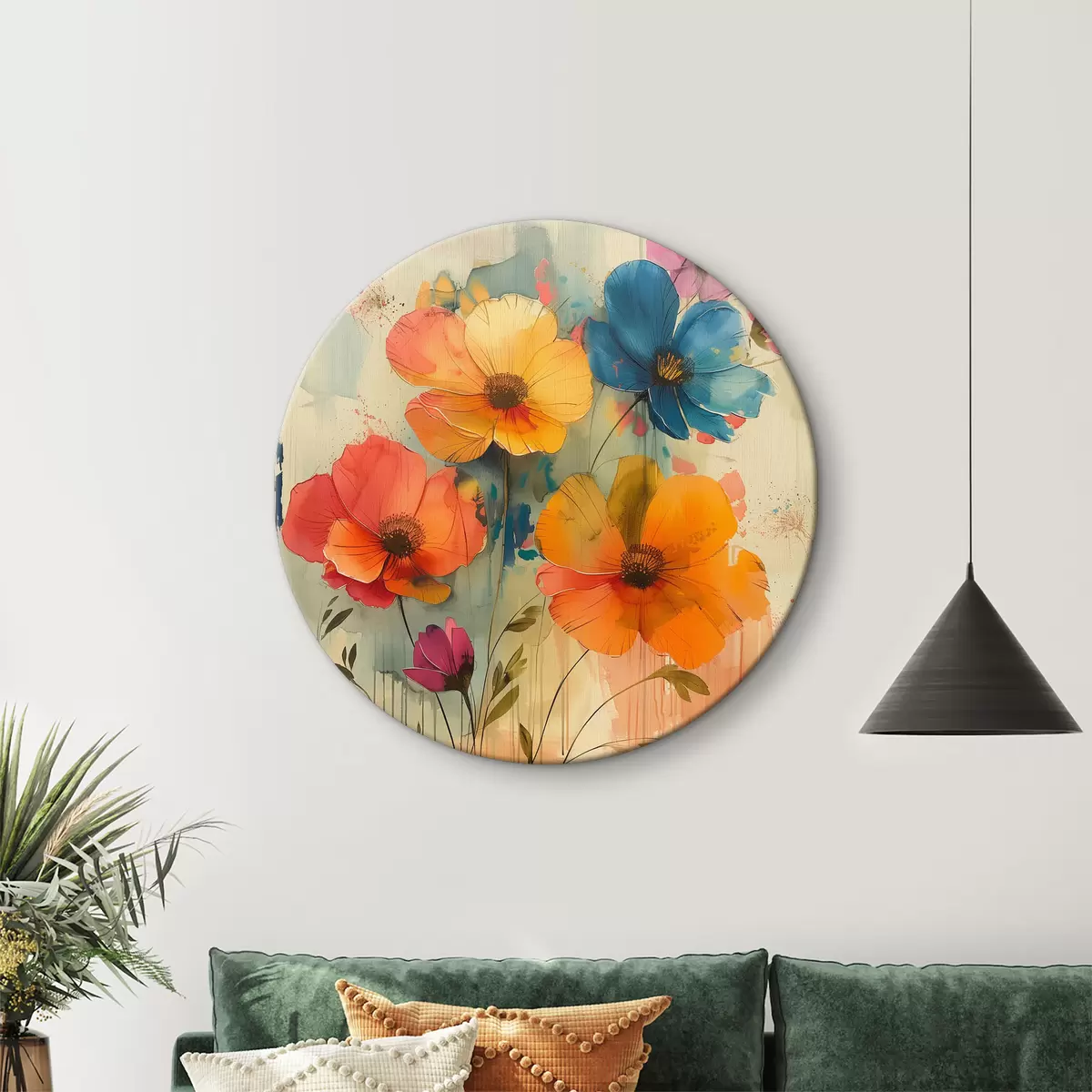 Ronde schilderijen Kleurrijke aquarelbloemen r40370