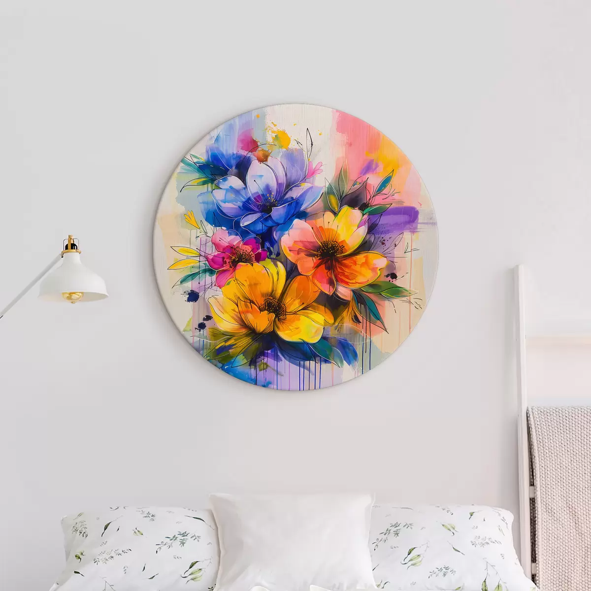 Ronde schilderijen Kleurrijke bloemen Nr r40372