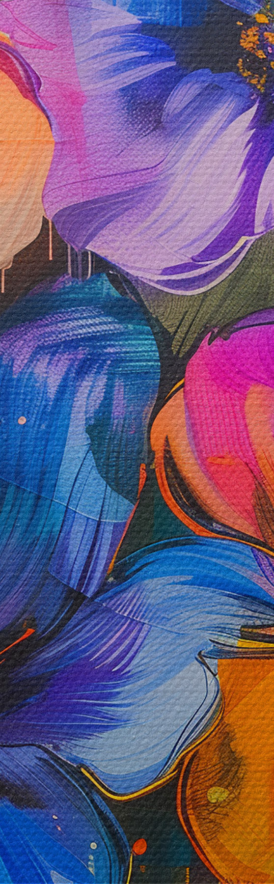 Er zijn drie soorten materiaal te bestellen: Economic Canvas - een dicht en duurzaam materiaal voor digitaal printen, identiek aan schildersdoek, waterdicht oppervlak, realistische weergave van details, materiaal met gemiddelde korrel. Premium Canvas - de textuur lijkt op die van schildersdoek (verweven kleine draden). Zachte, gedetailleerde reproductie van de afbeelding op een mat oppervlak. Eco-Premium - hoogwaardige 100% katoenen stof. Dankzij de natuurlijke katoenvezels is het materiaal duurzaam en slijtvast. Uitstekende kleurweergave en detail.
