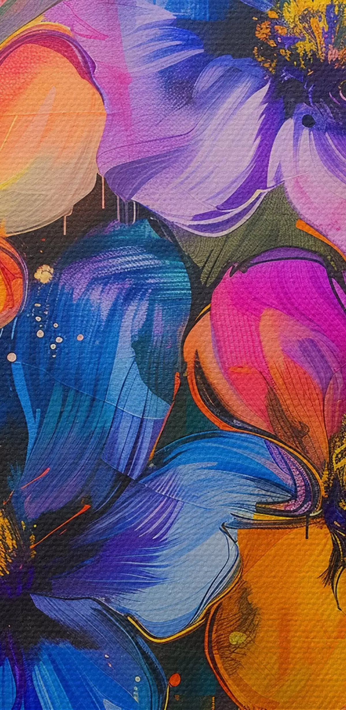 Het schilderij kan direct na ontvangst worden opgehangen. Het schilderij wordt opgespannen op een 2 cm breed houten spieraam.