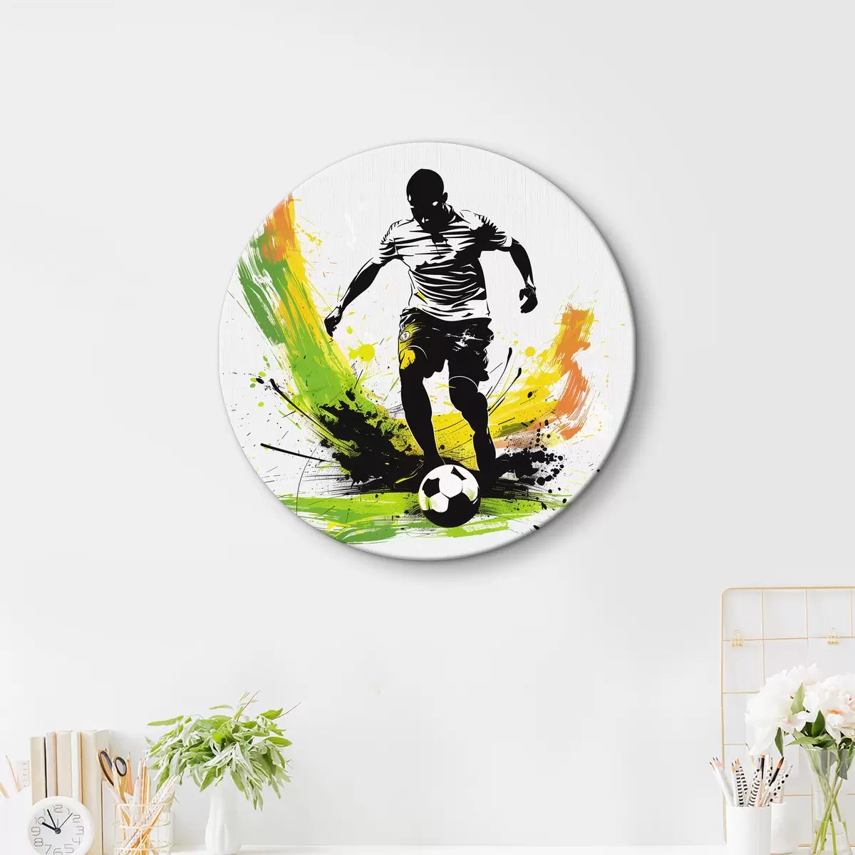 Ronde schilderijen Voetballer op een achtergrond van kleurrijke spatten Nr r40381