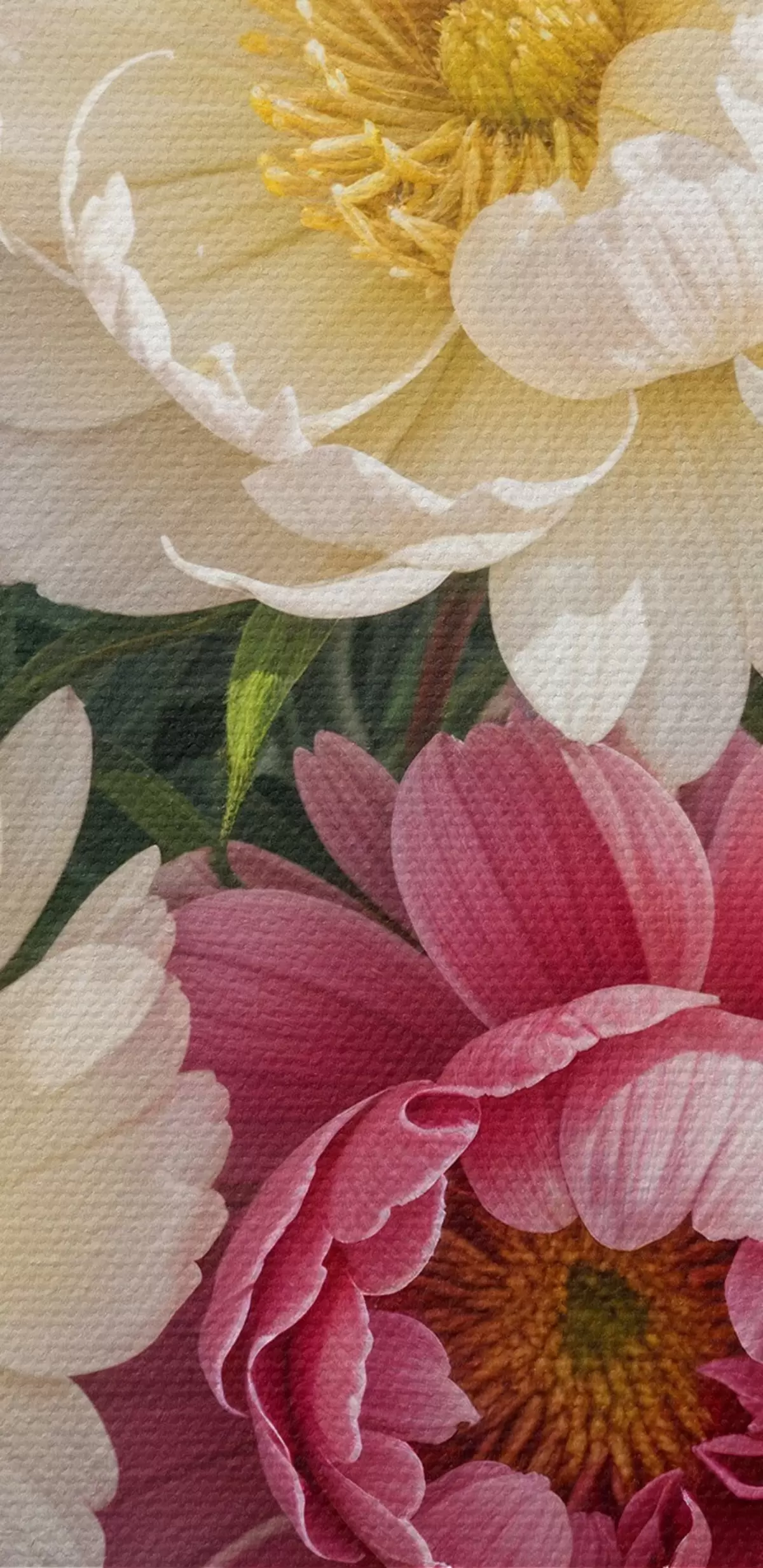 Er zijn drie soorten materiaal te bestellen: Economic Canvas - een dicht en duurzaam materiaal voor digitaal printen, identiek aan schildersdoek, waterdicht oppervlak, realistische weergave van details, materiaal met gemiddelde korrel. Premium Canvas - de textuur lijkt op die van schildersdoek (verweven kleine draden). Zachte, gedetailleerde reproductie van de afbeelding op een mat oppervlak. Eco-Premium - hoogwaardige 100% katoenen stof. Dankzij de natuurlijke katoenvezels is het materiaal duurzaam en slijtvast. Uitstekende kleurweergave en detail.