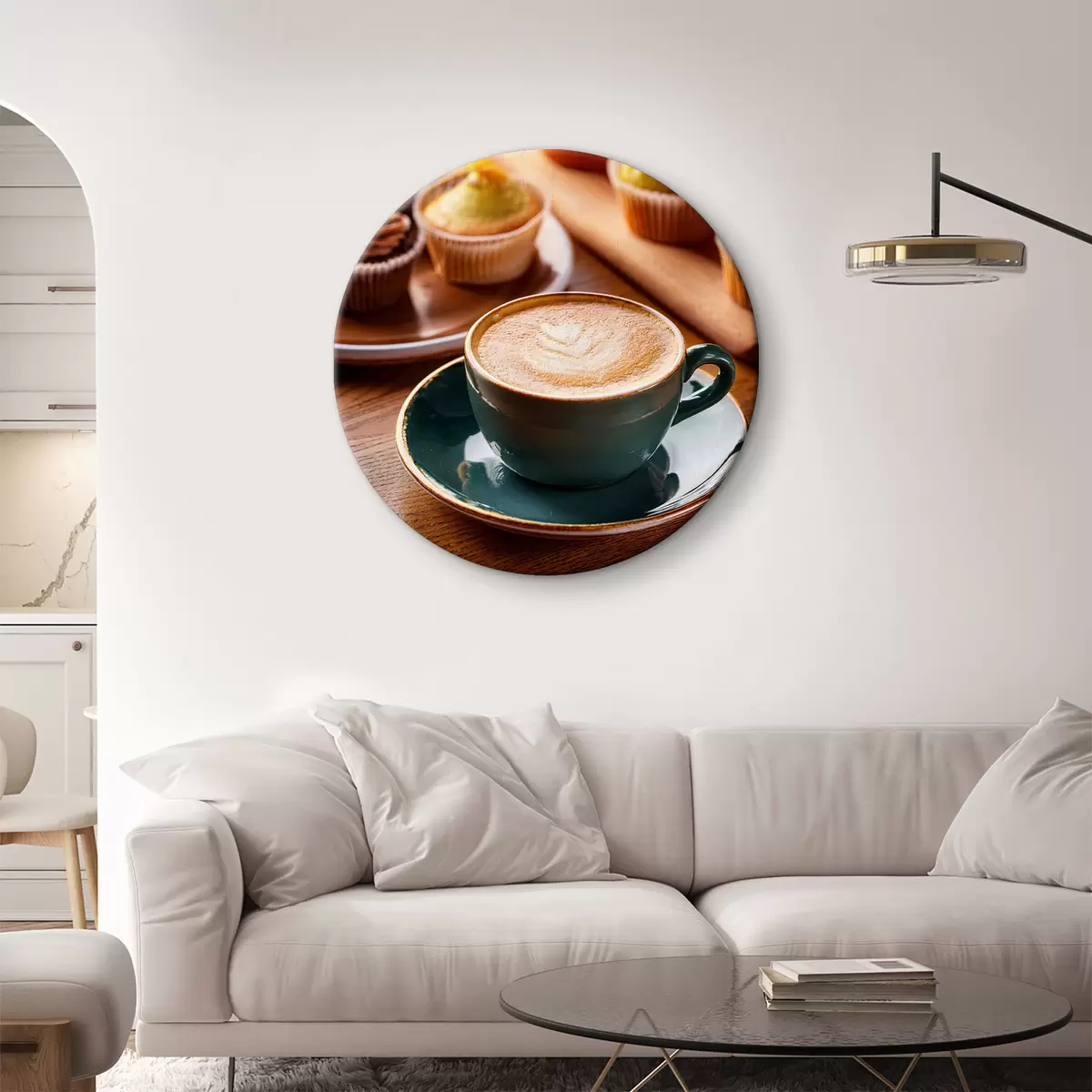 Ronde schilderijen een kopje koffie, een stilleven, taarten Nr r40416