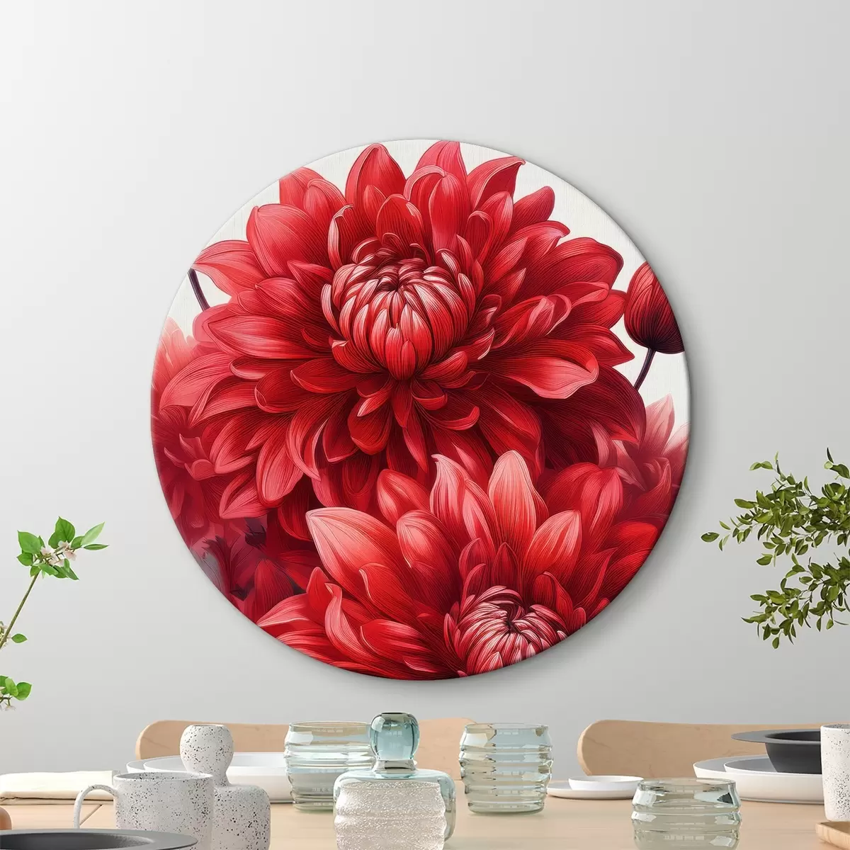 Ronde schilderijen rode chrysanten van dichtbij Nr r40422
