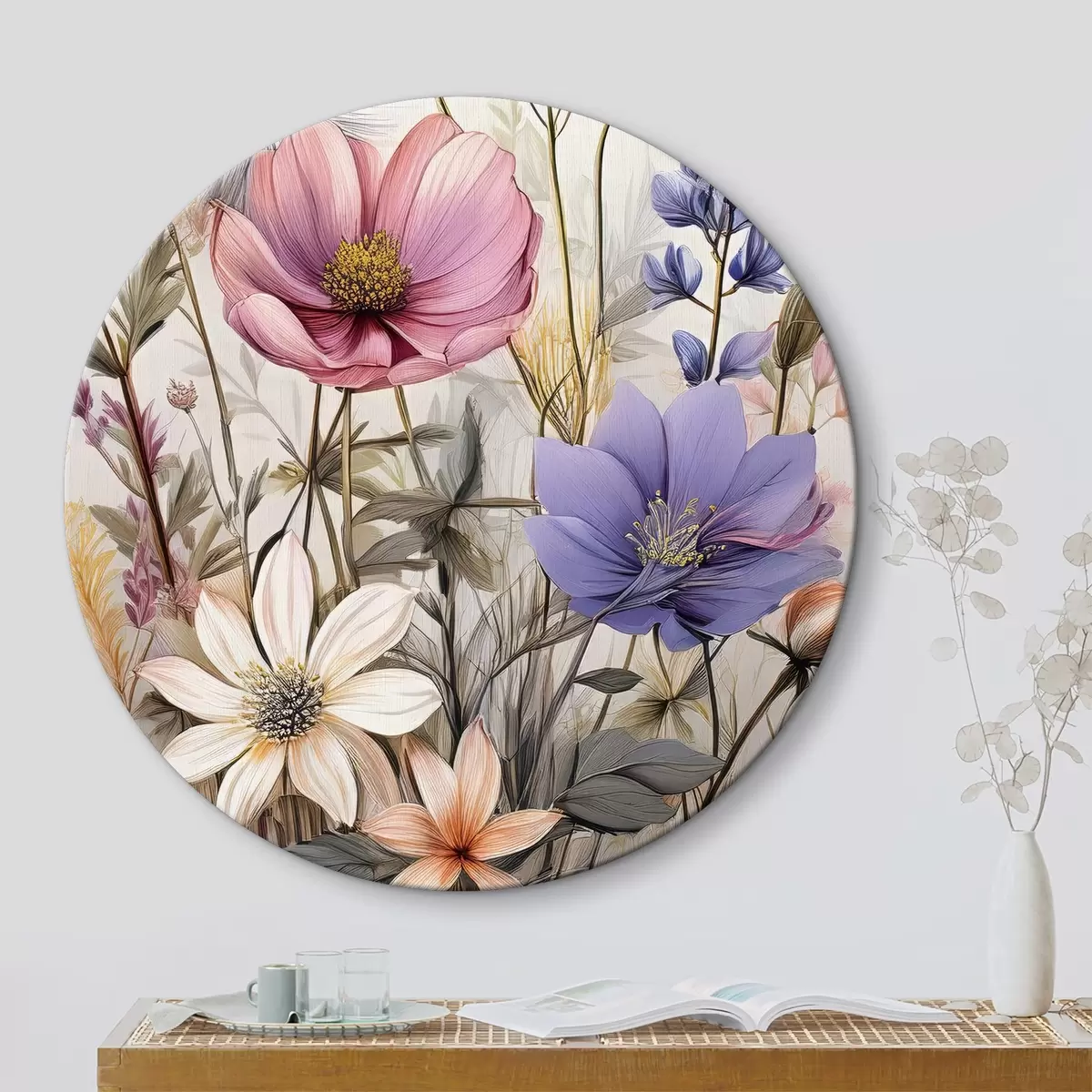 Ronde schilderijen wilde bloemen, bloemstuk r40423