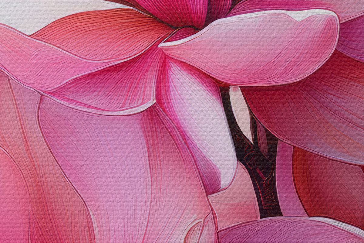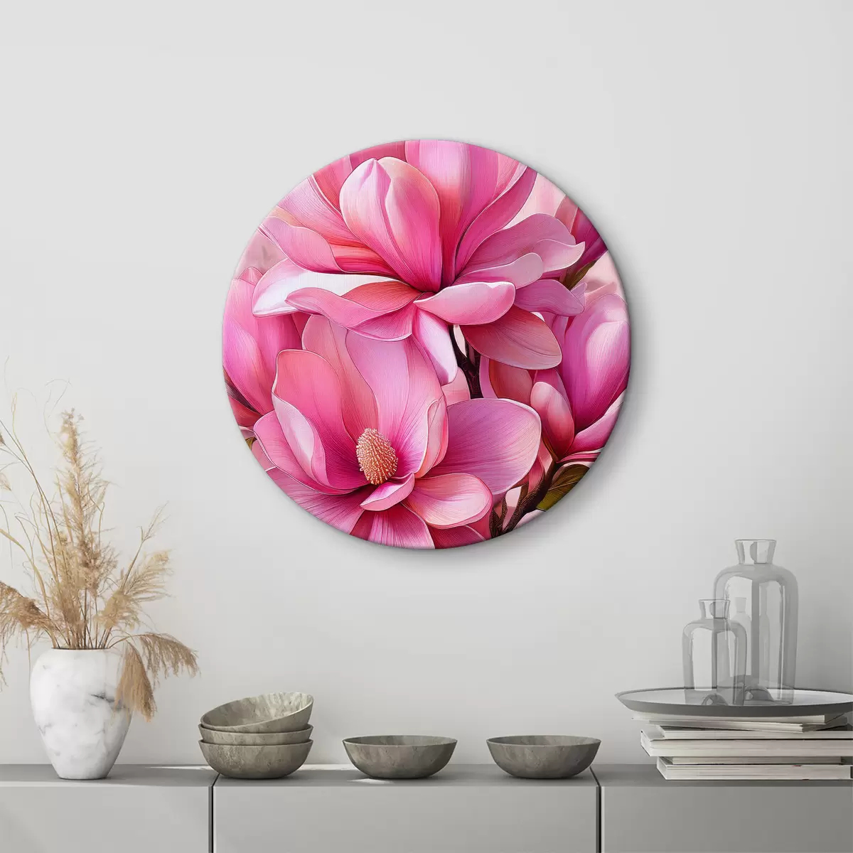 Ronde schilderijen roze magnolia's, grote bloemen, felroze bloemen r40424