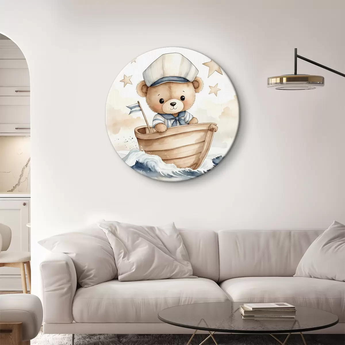 Ronde schilderijen Schattige aquarelbeer in een boot Nr r40428