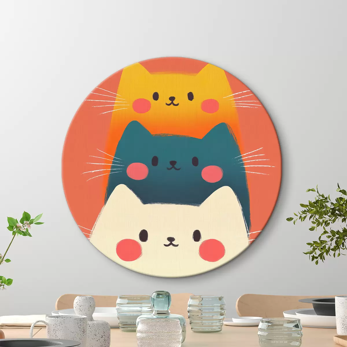 Ronde schilderijen Drie veelkleurige abstracte katten Nr r40431
