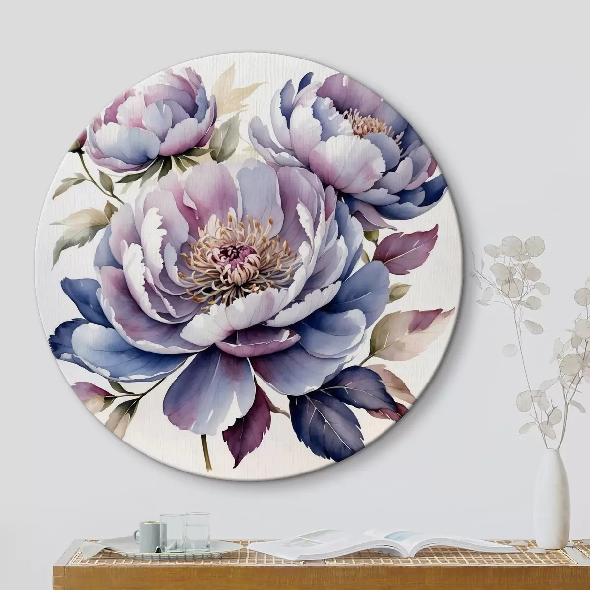 Ronde schilderijen Grote paarse aquarelbloemen Nr r40434