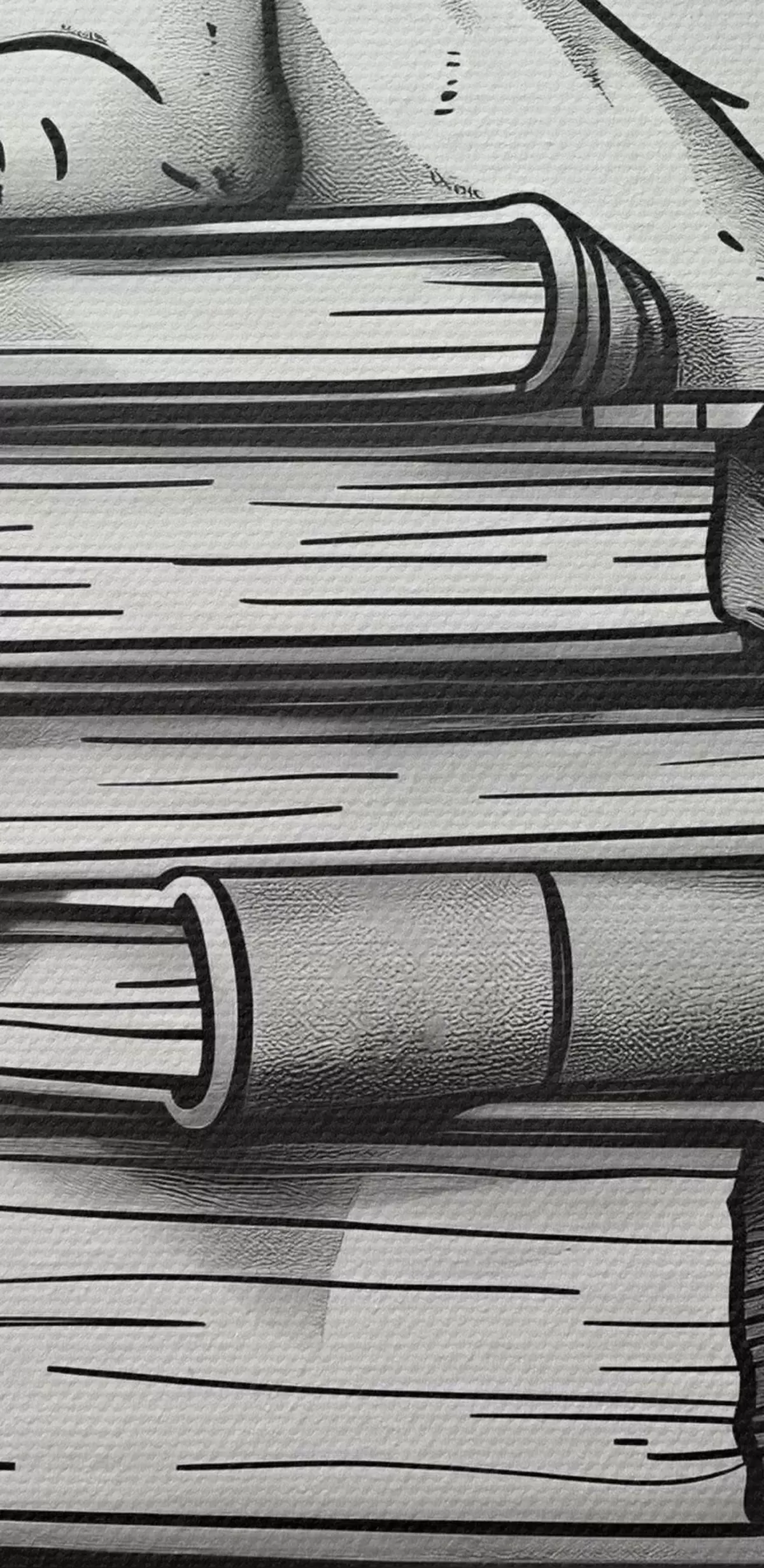 Om het doek op te spannen op spielatten zonder de afbeelding te beschadigen, gebruiken we gespiegeld beeld.