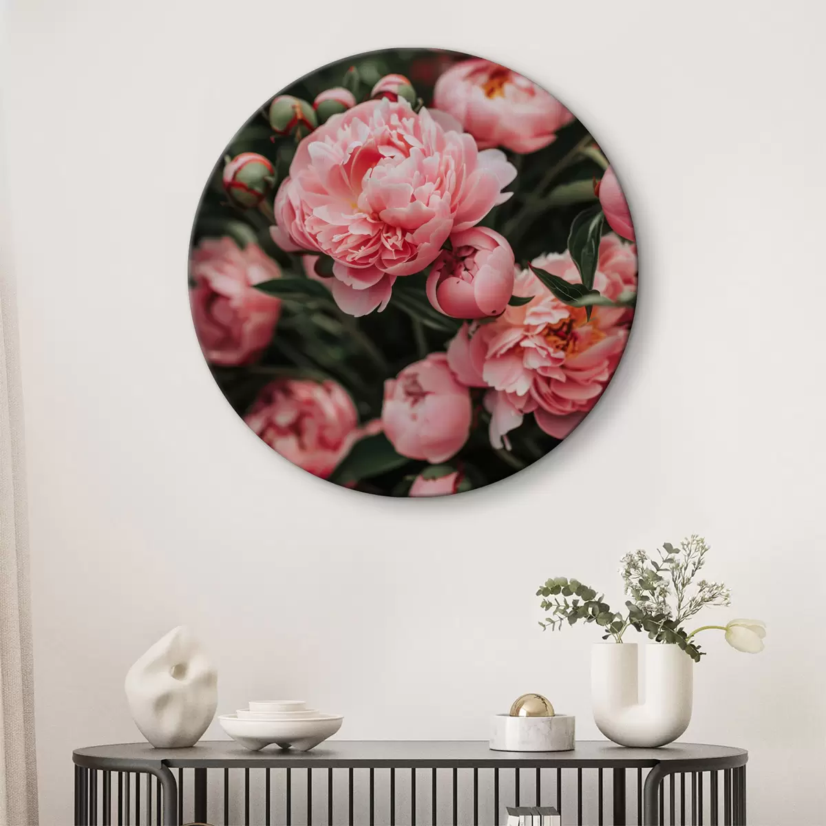 Ronde schilderijen Roze pioenrozen Nr r40449