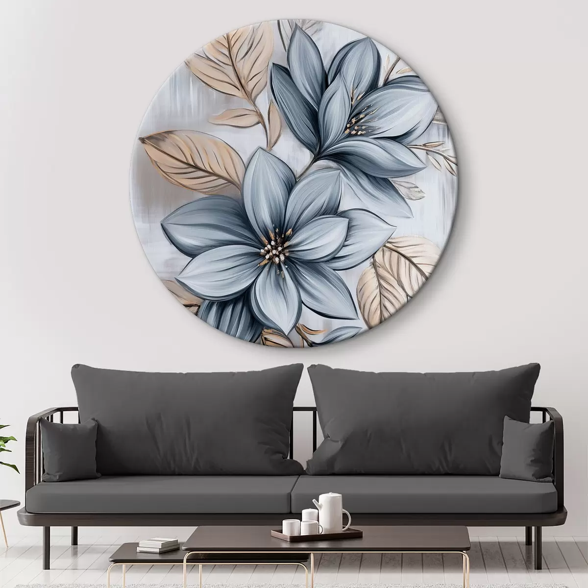 Ronde schilderijen Blauwe bloemen op een grijze achtergrond Nr r40453