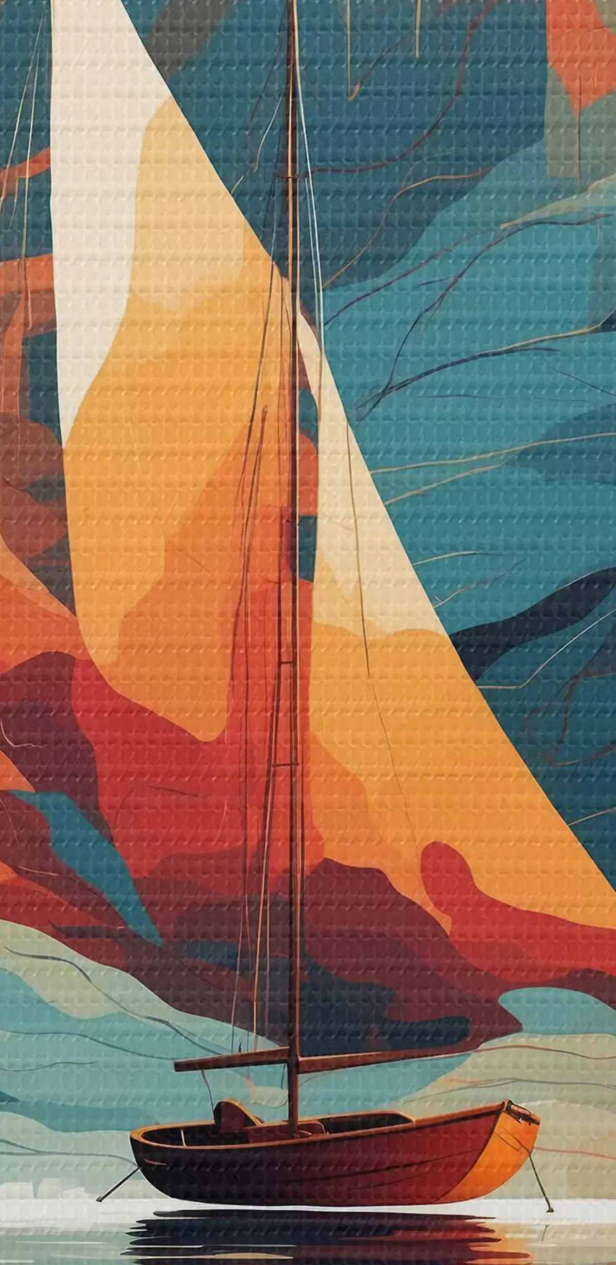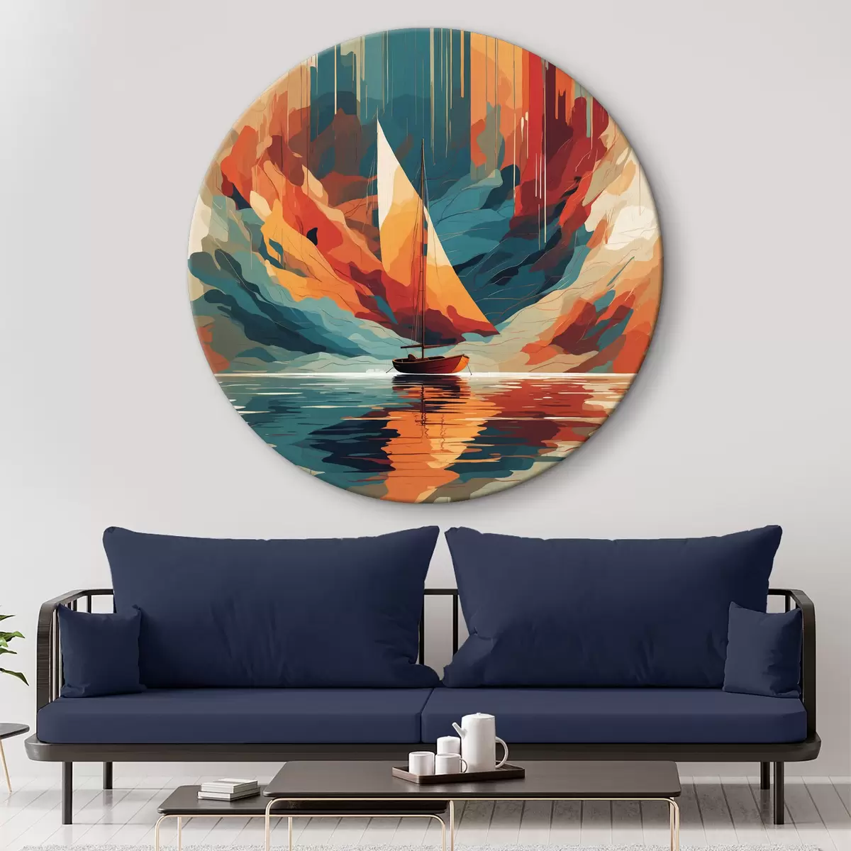 Ronde schilderijen Boot op het meer in vectorafbeelding Nr r40462