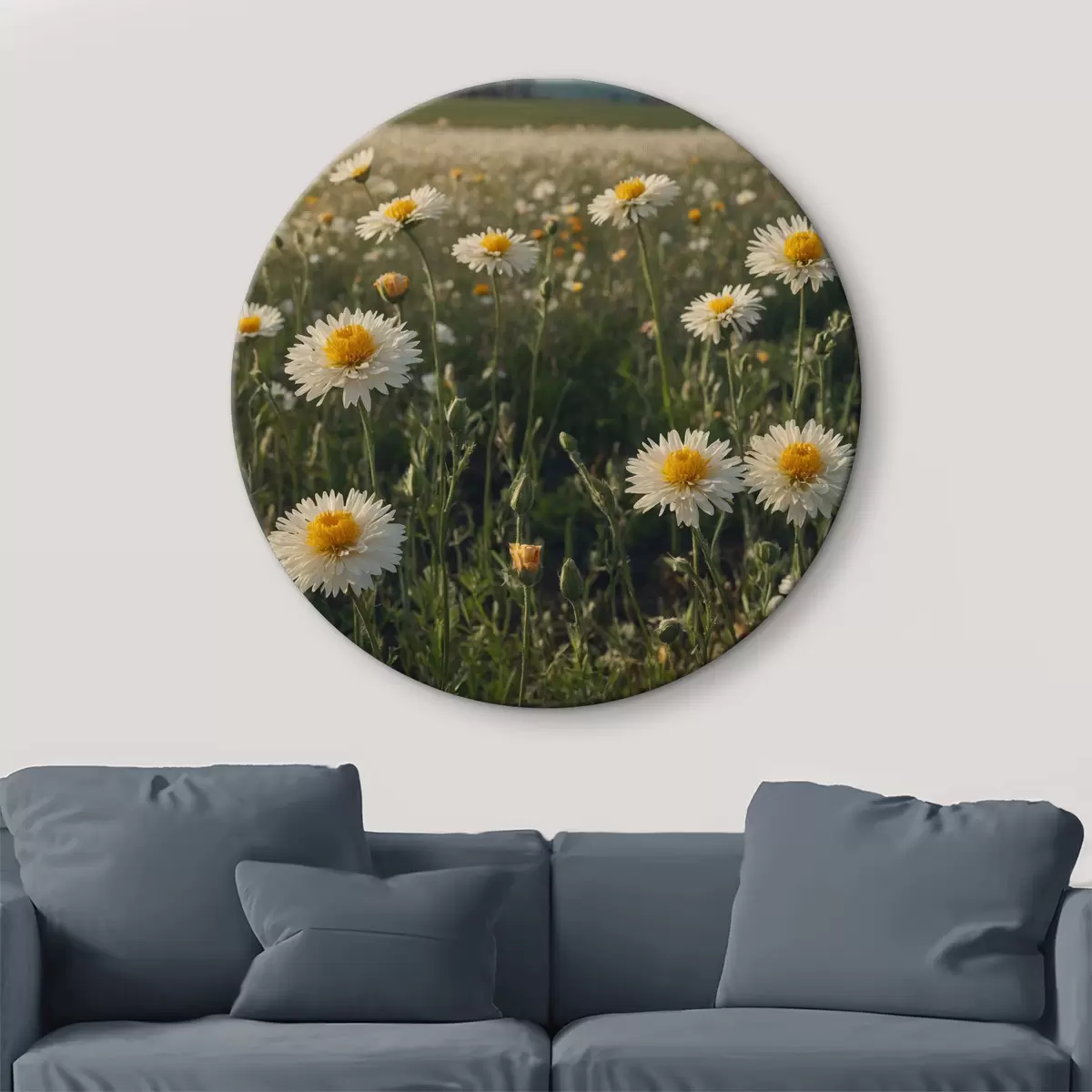 Ronde schilderijen Veld met madeliefjes Nr r40466