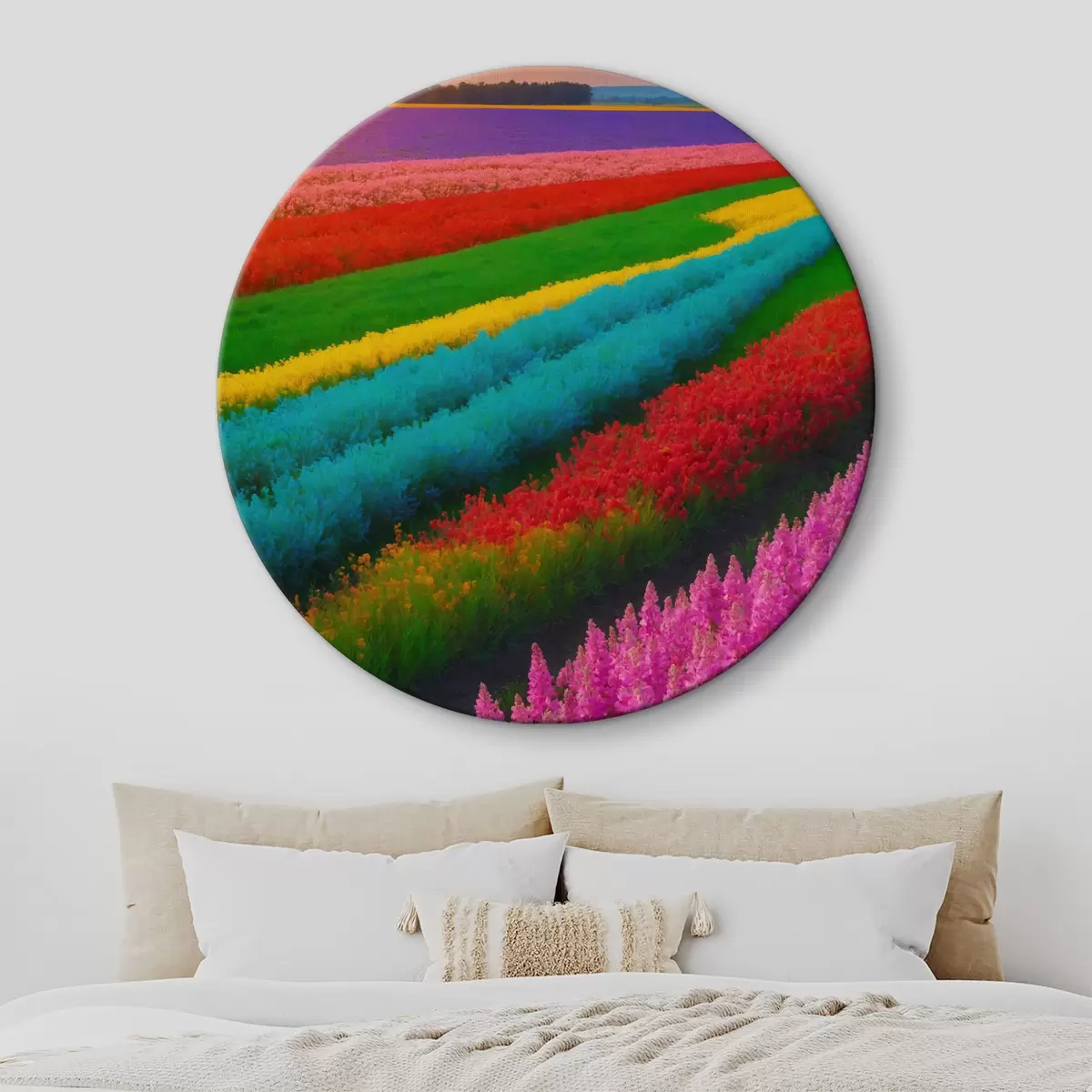 Ronde schilderijen Kleurrijk bloemenveld Nr r40468