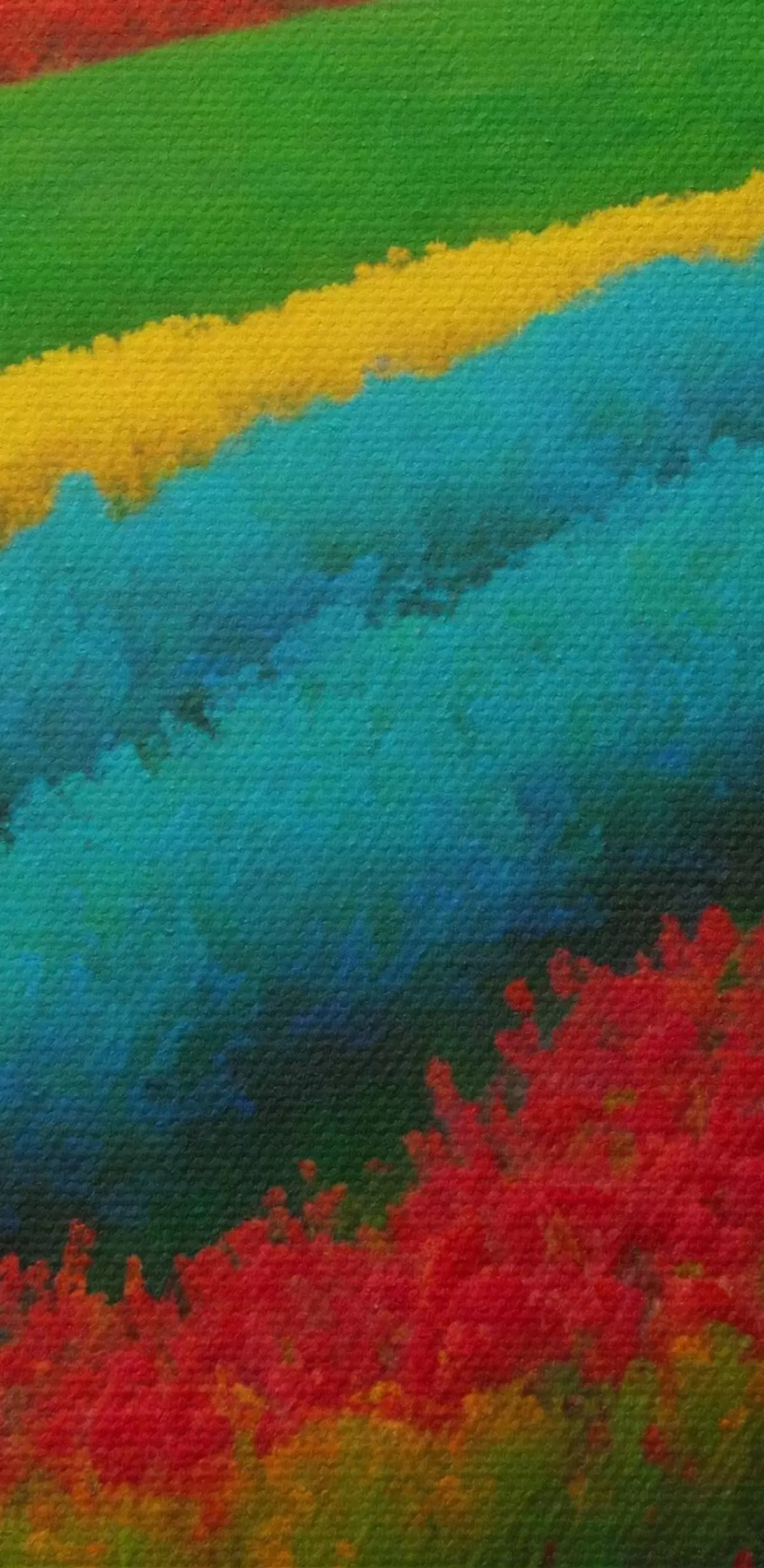 Het schilderij kan direct na ontvangst worden opgehangen. Het schilderij wordt opgespannen op een 2 cm breed houten spieraam.