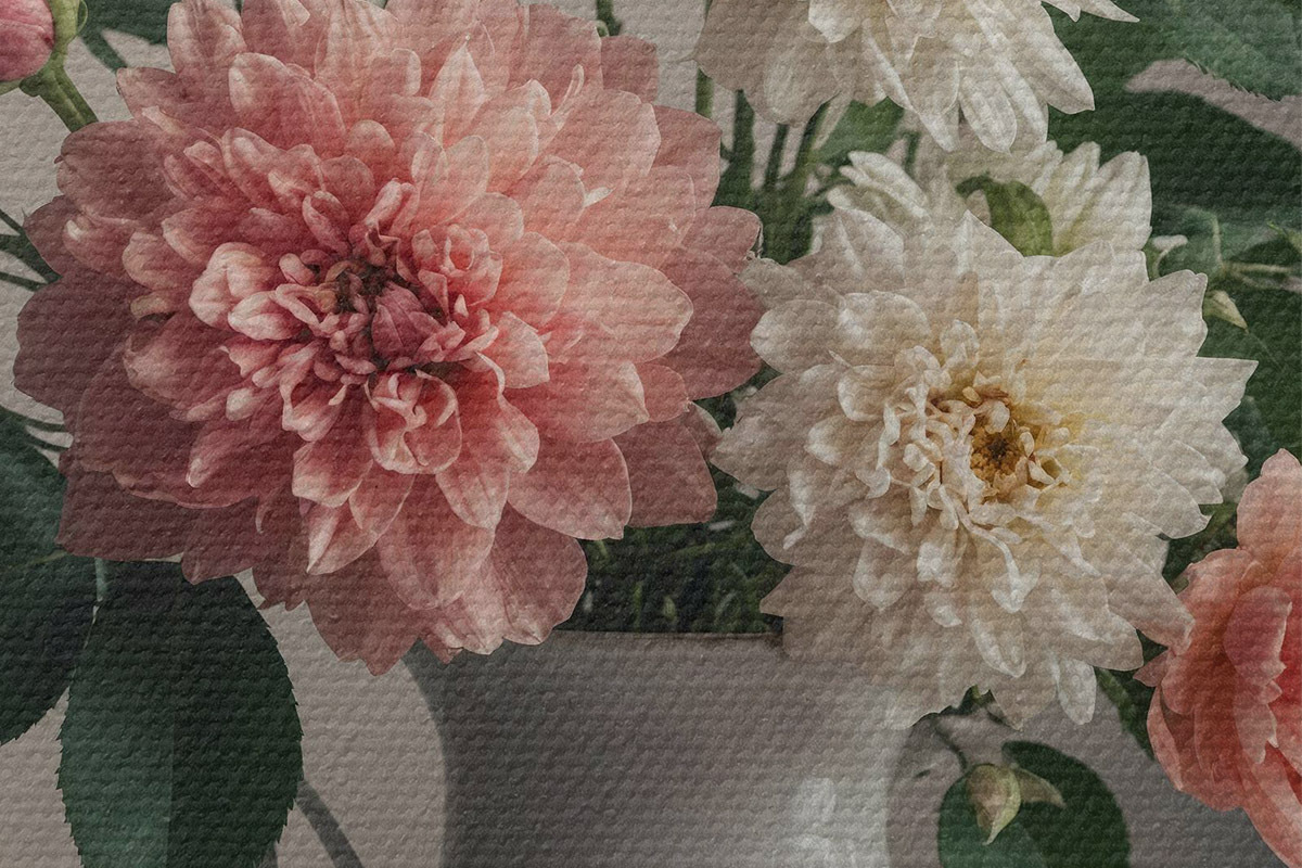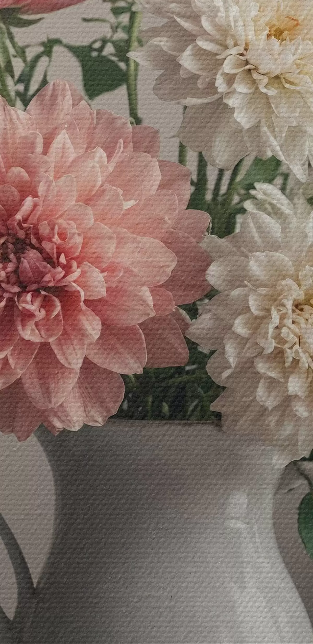 Er zijn drie soorten materiaal te bestellen: Economic Canvas - een dicht en duurzaam materiaal voor digitaal printen, identiek aan schildersdoek, waterdicht oppervlak, realistische weergave van details, materiaal met gemiddelde korrel. Premium Canvas - de textuur lijkt op die van schildersdoek (verweven kleine draden). Zachte, gedetailleerde reproductie van de afbeelding op een mat oppervlak. Eco-Premium - hoogwaardige 100% katoenen stof. Dankzij de natuurlijke katoenvezels is het materiaal duurzaam en slijtvast. Uitstekende kleurweergave en detail.