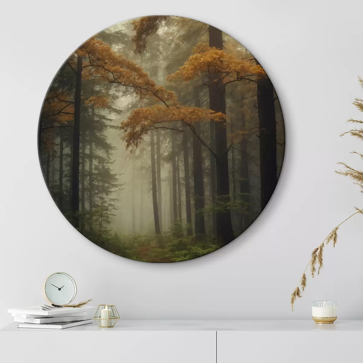 Ronde schilderijen Mist in het herfstbos Nr r40474