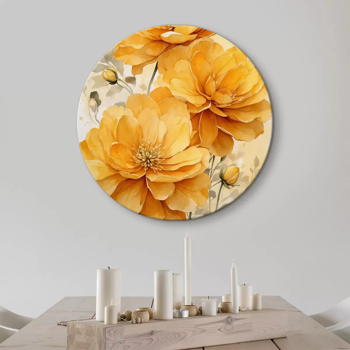 Ronde schilderijen Gele bloemen op een wazige achtergrond Nr r40482
