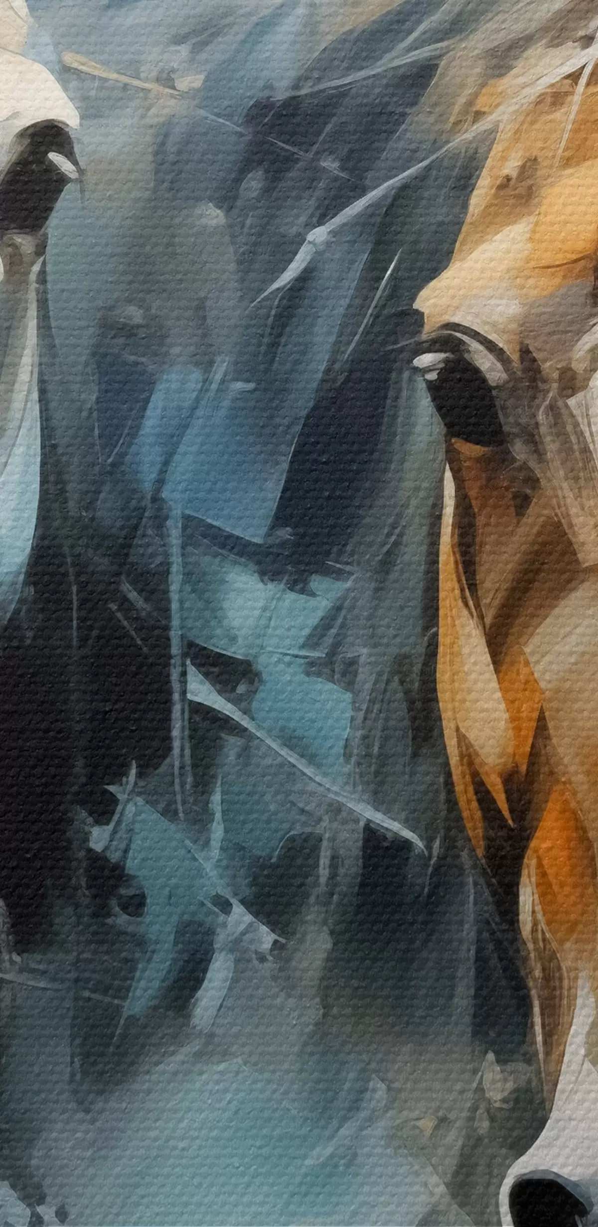 Ronde schilderijen Paarden abstract schilderij, wit, blauw, bruine kleur Nr r40493