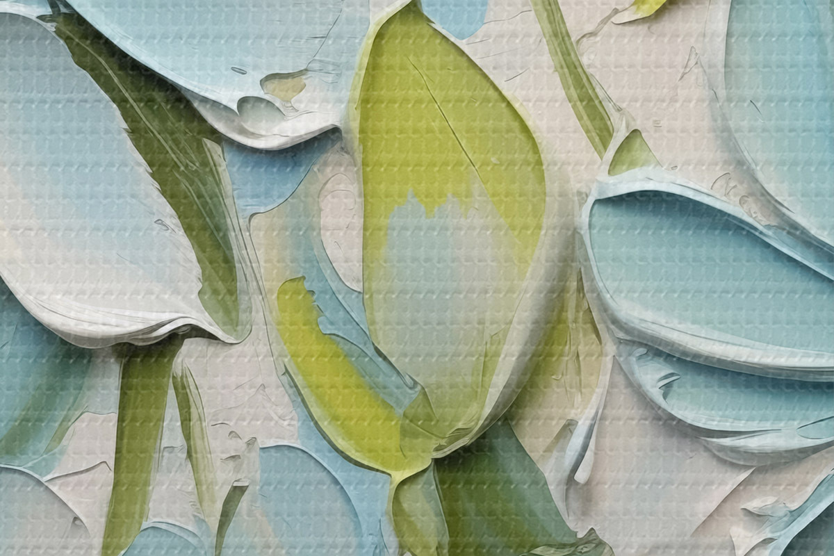 Ronde schilderijen Delicate wilde bloemen, imitatie van verfstreken, blauw, groen, grijs Nr r40495