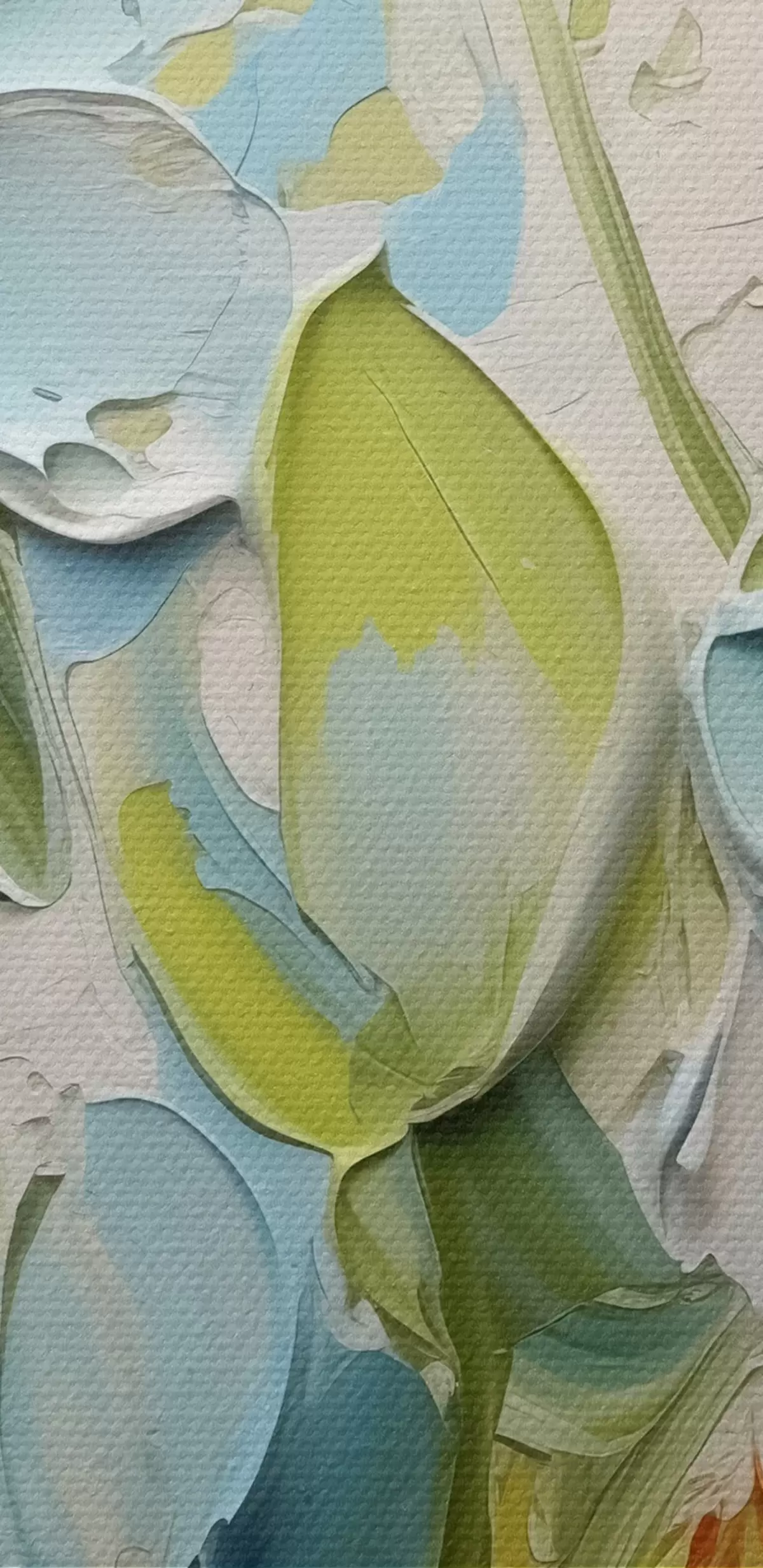 Het schilderij kan direct na ontvangst worden opgehangen. Het schilderij wordt opgespannen op een 2 cm breed houten spieraam.