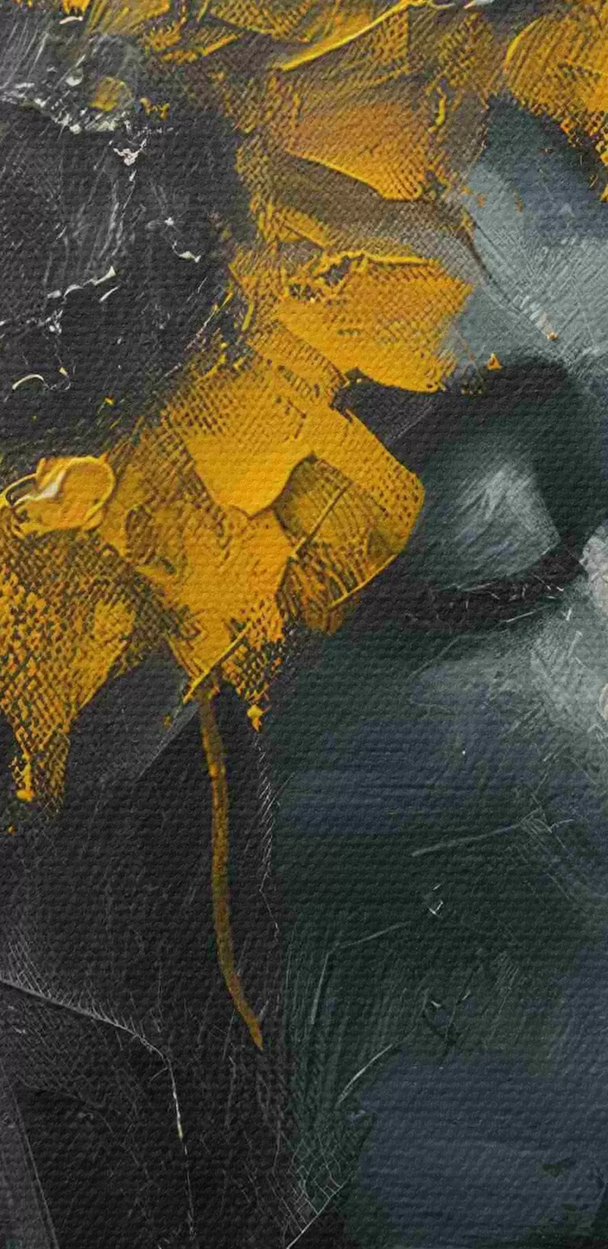 Het schilderij kan direct na ontvangst worden opgehangen. Het schilderij wordt opgespannen op een 2 cm breed houten spieraam.