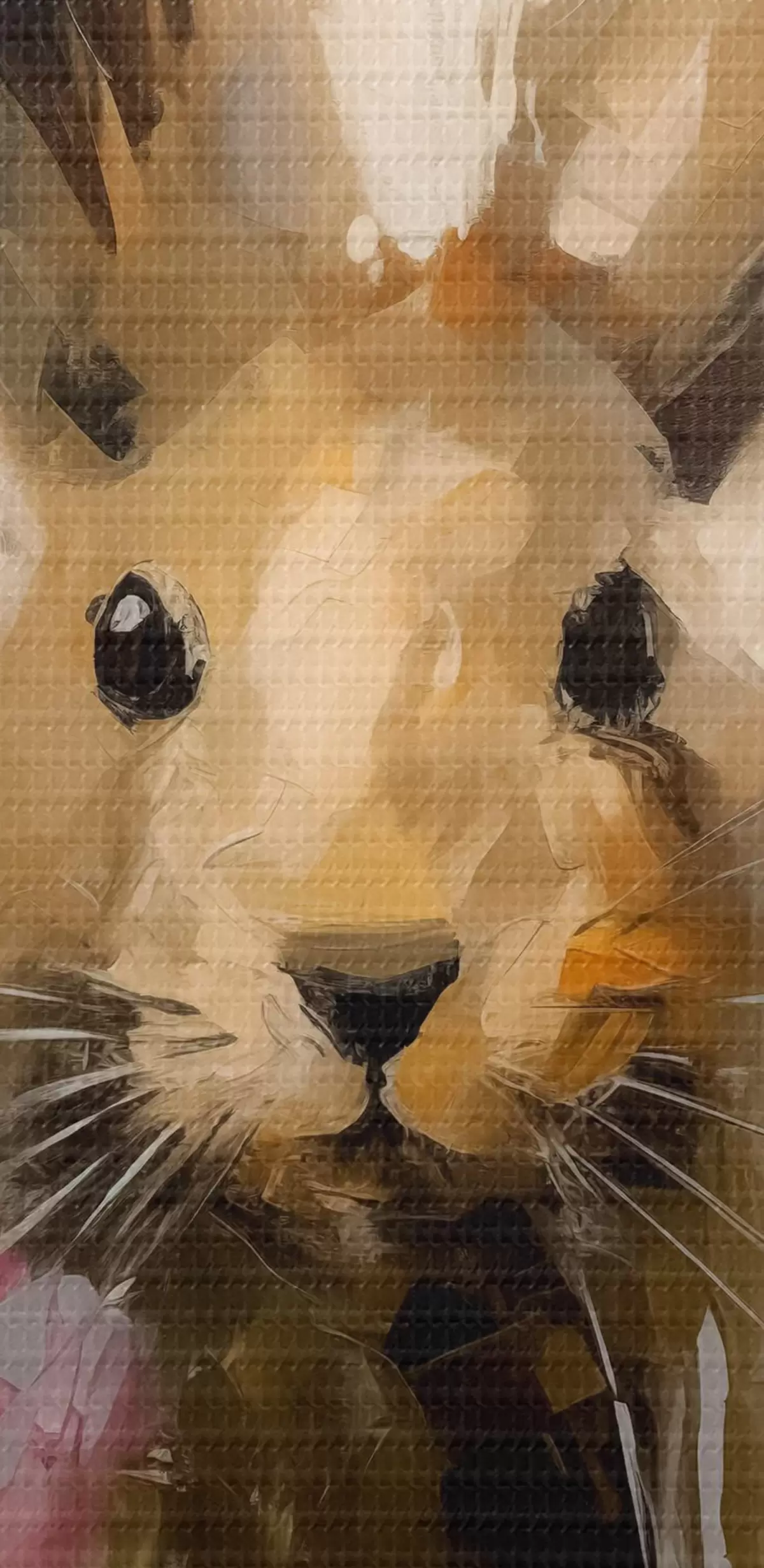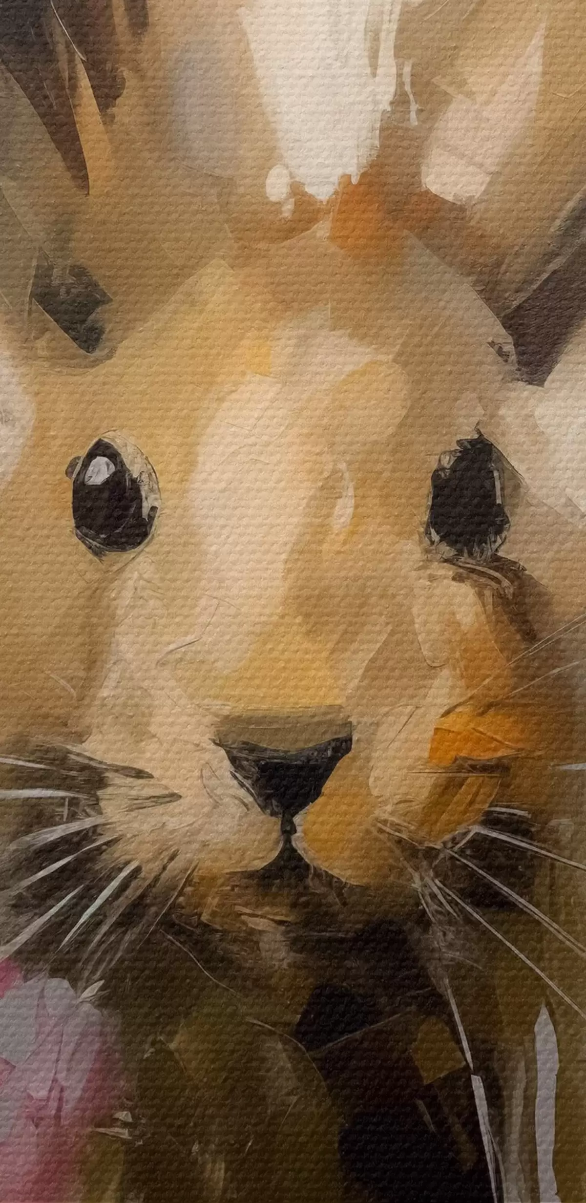 Ronde schilderijen Abstracte haas en bloem, grijs, roze, bruin Nr r40516