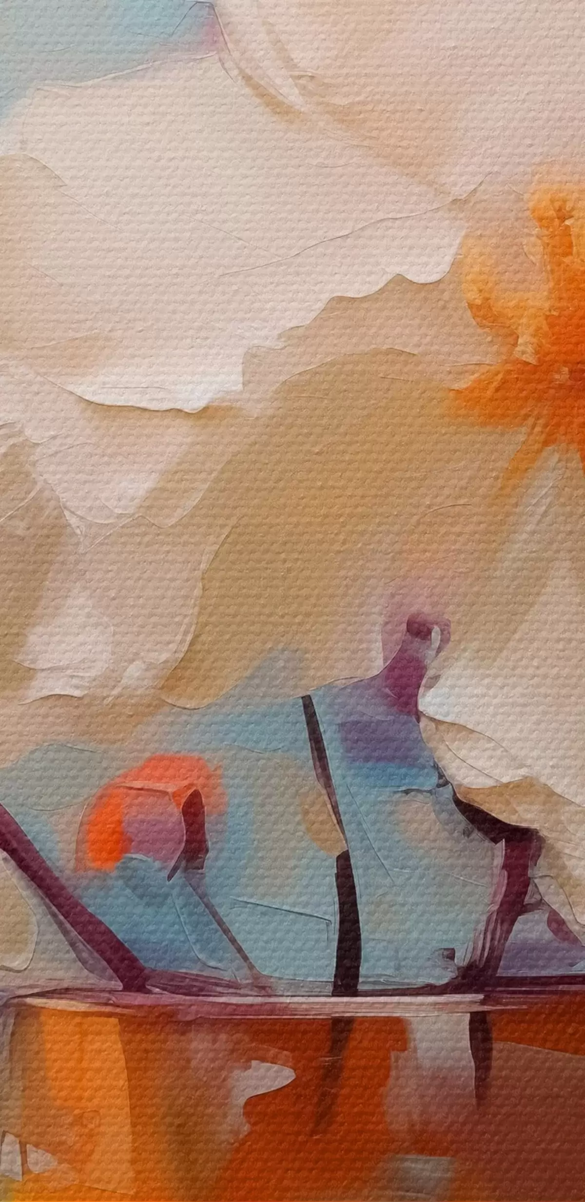 Het schilderij kan direct na ontvangst worden opgehangen. Het schilderij wordt opgespannen op een 2 cm breed houten spieraam.