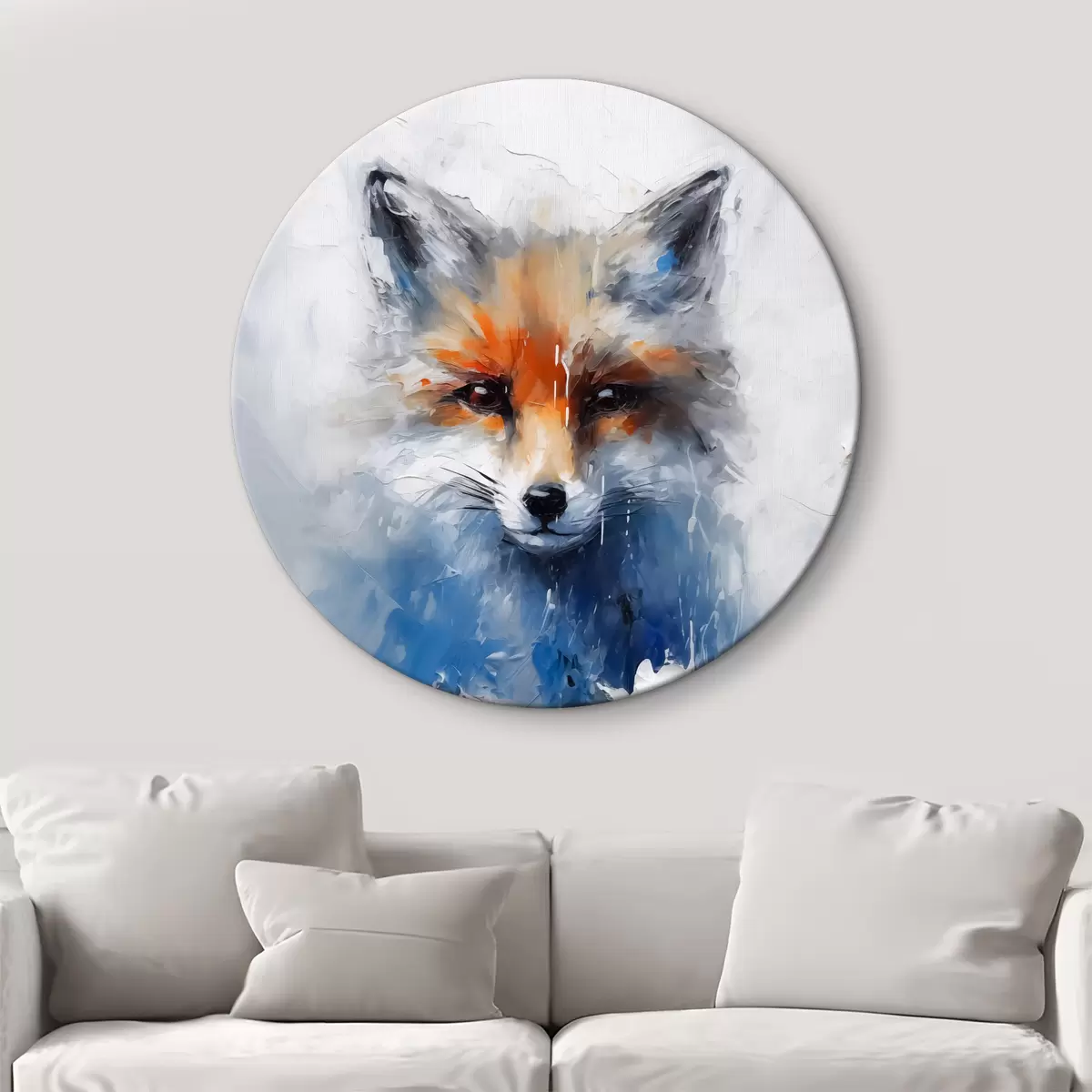 Ronde schilderijen Abstract portret van een vos in blauwe verfspatten Nr r40524