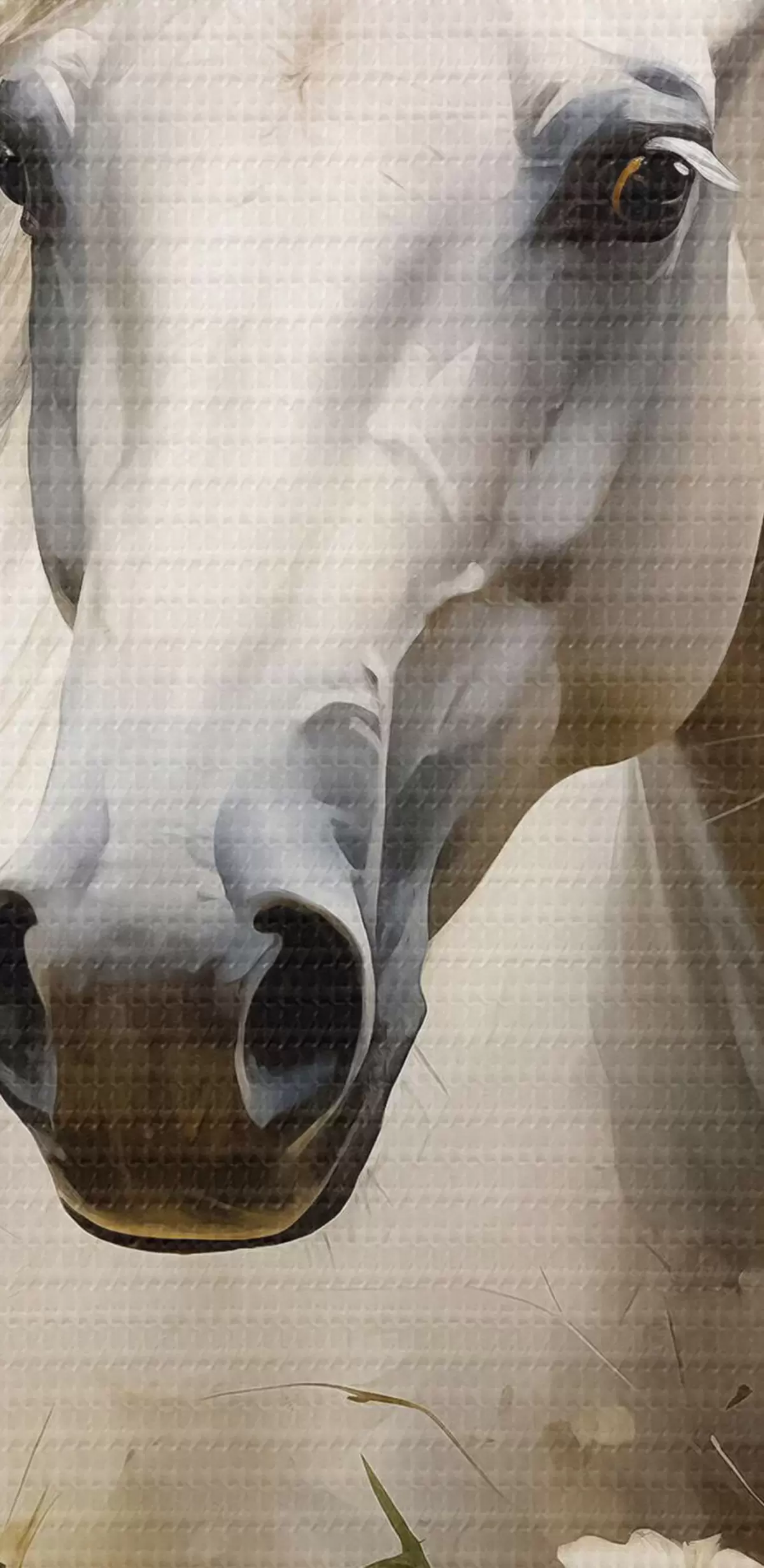 Ronde schilderijen Wit paard in het gras tussen madeliefjes Nr r40533
