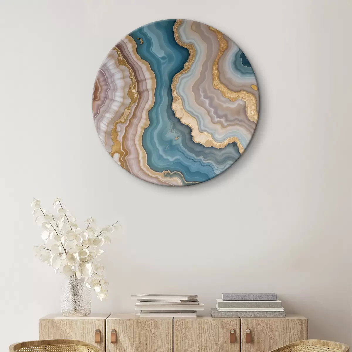 Ronde schilderijen Kleurrijke abstracte agaatsteen met wervelende patronen en lagen van turquoise, beige, roze en geel r40540