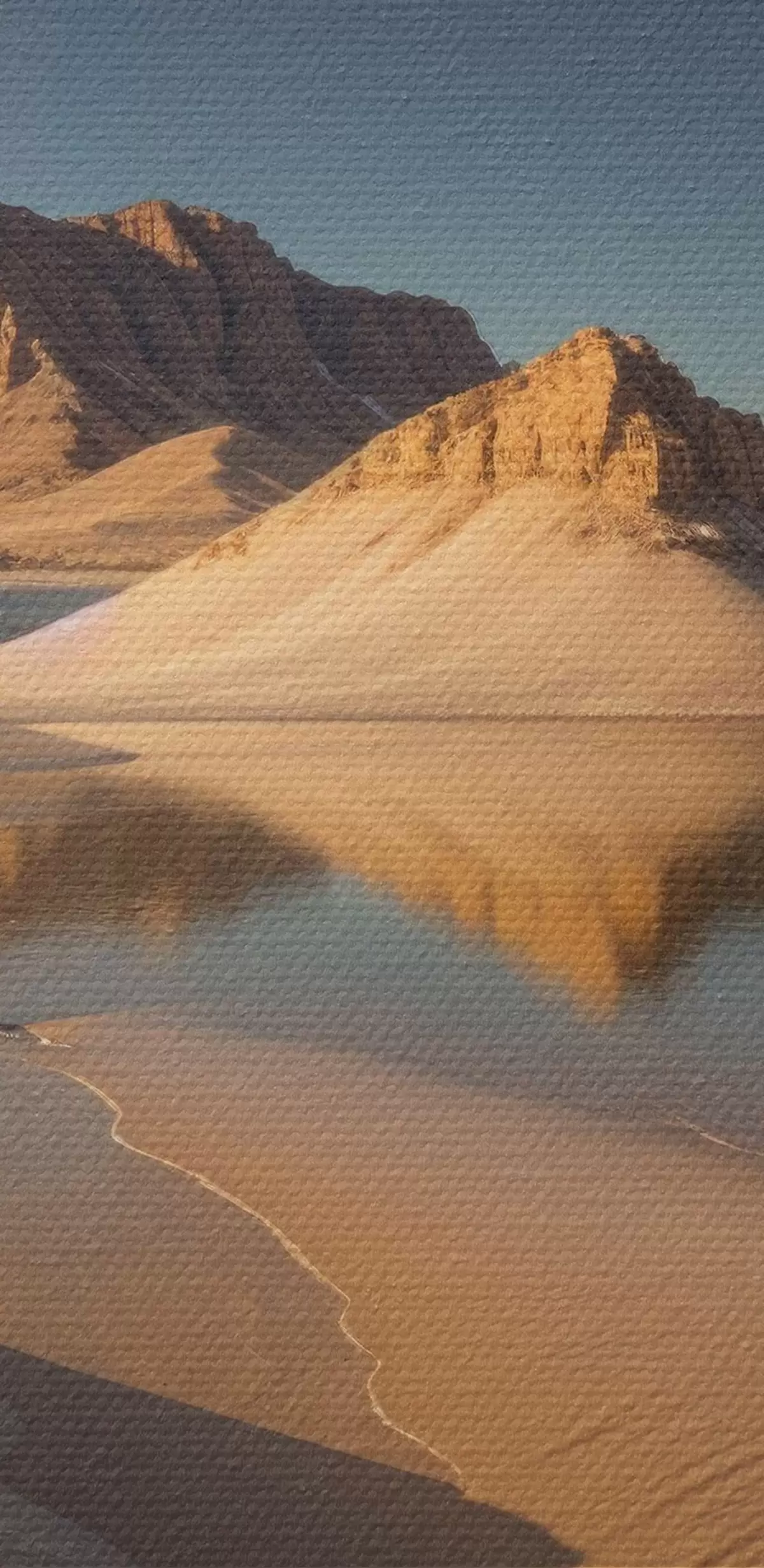 Het is een goedkopere versie van canvas. Het is duurzamer en vochtbestendiger, maar het oppervlak heeft niet zo'n uitgesproken textuur als Premium Canvas