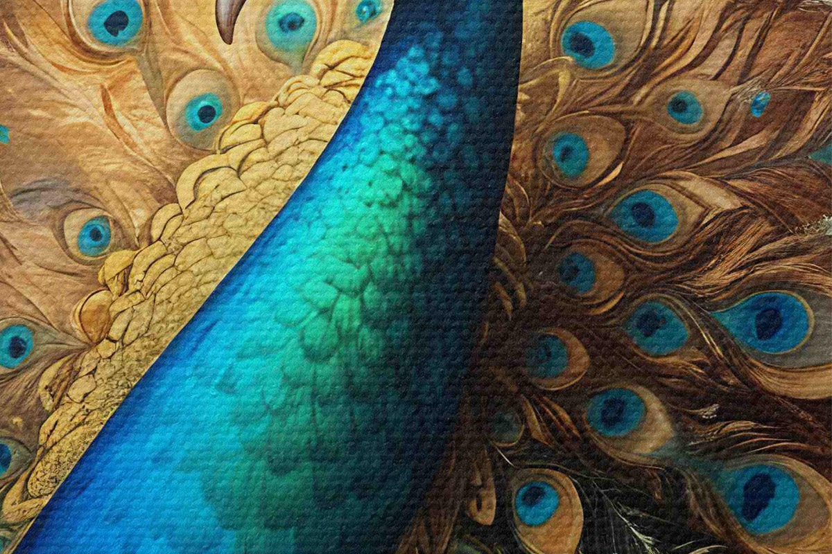 Ronde schilderijen Een levendige pauw met volledig ontblote veren en een prachtig blauw en groen verenkleed r40571