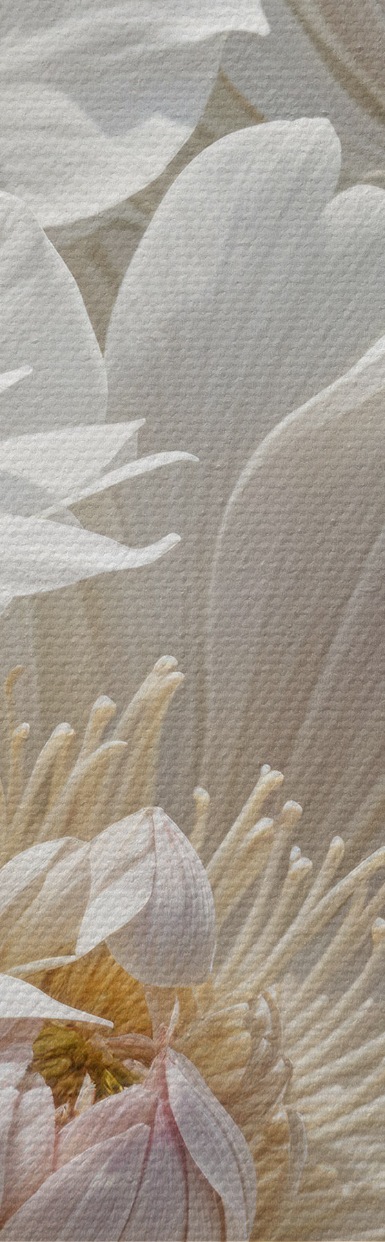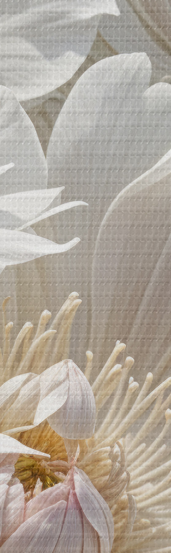 Er zijn drie soorten materiaal te bestellen: Economic Canvas - een dicht en duurzaam materiaal voor digitaal printen, identiek aan schildersdoek, waterdicht oppervlak, realistische weergave van details, materiaal met gemiddelde korrel. Premium Canvas - de textuur lijkt op die van schildersdoek (verweven kleine draden). Zachte, gedetailleerde reproductie van de afbeelding op een mat oppervlak. Eco-Premium - hoogwaardige 100% katoenen stof. Dankzij de natuurlijke katoenvezels is het materiaal duurzaam en slijtvast. Uitstekende kleurweergave en detail.