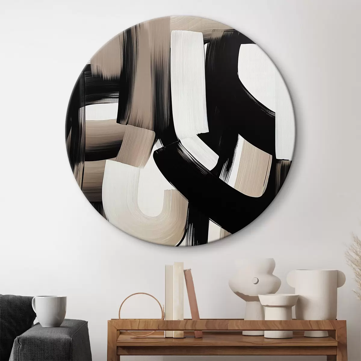 Ronde schilderijen Abstract schilderij met grote penseelstreken Nr r40581