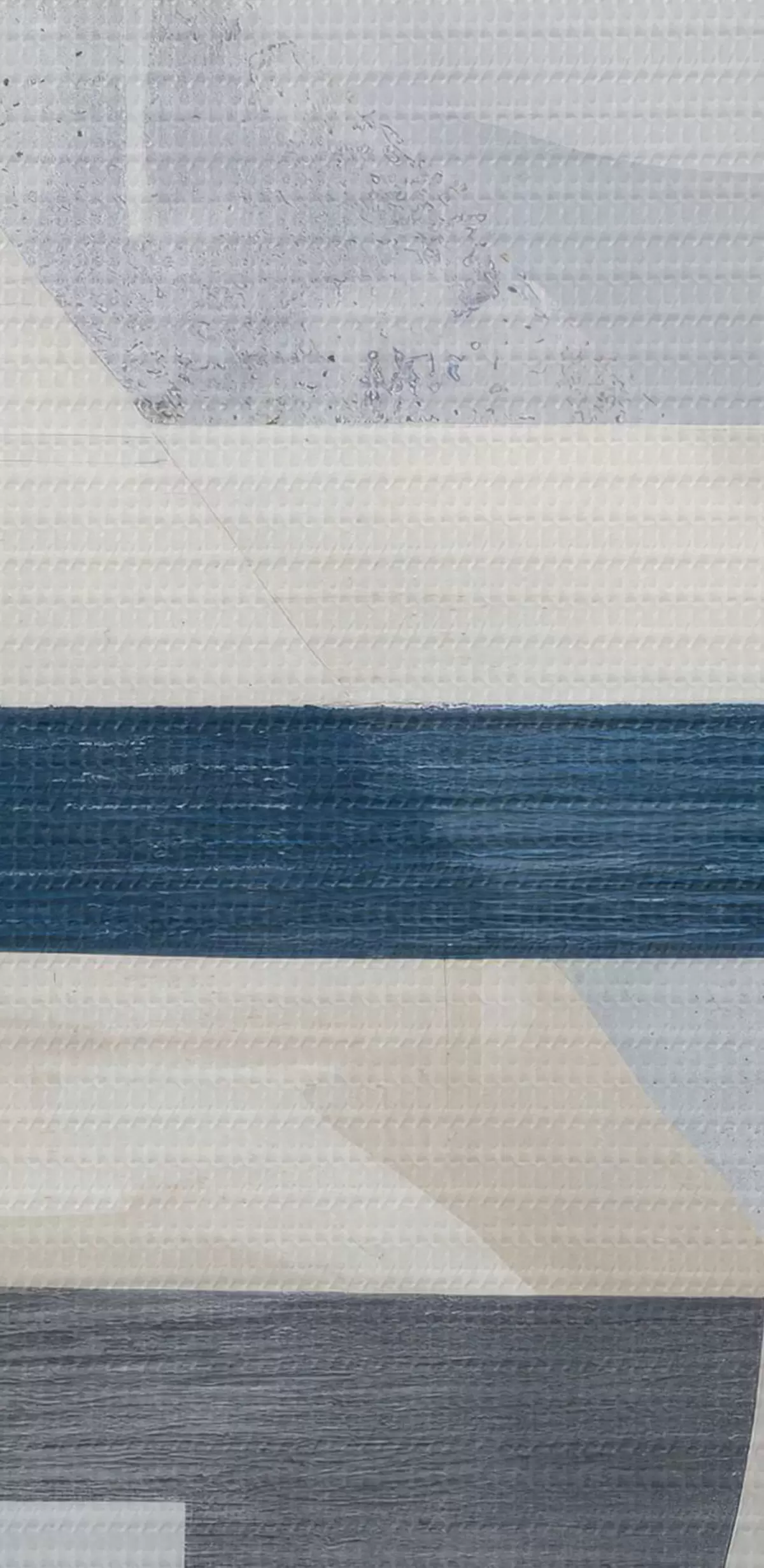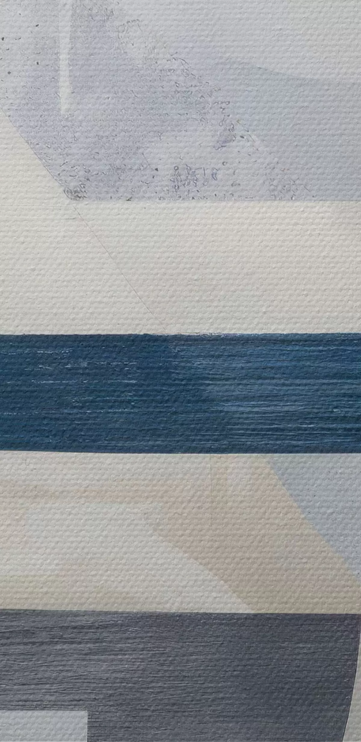 Ronde schilderijen Minimalistische abstractie met geometrische vormen en texturen in blauw-, grijs- en wittinten Nr r40596