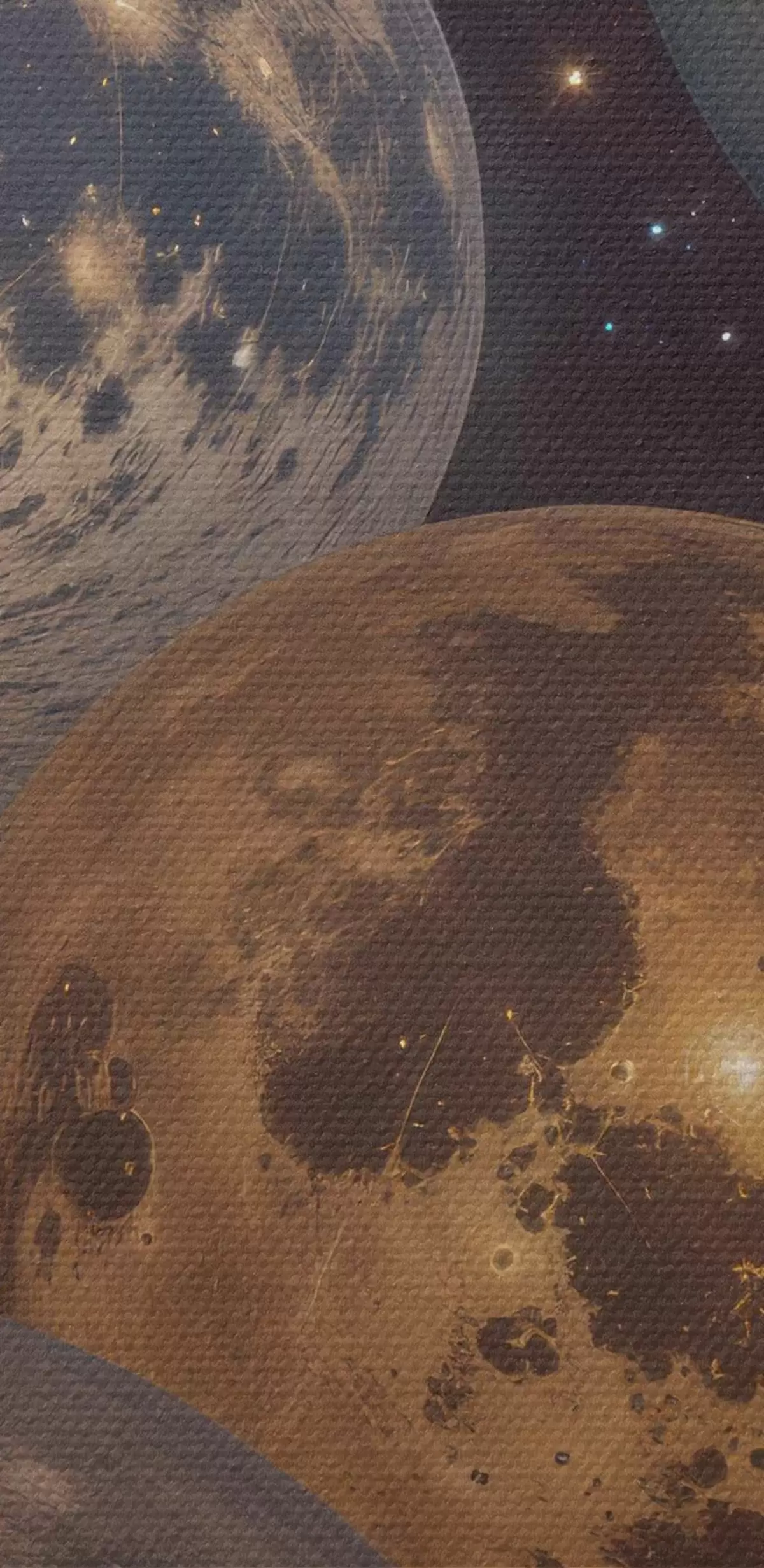 Ronde schilderijen Abstracte ruimteprint met kleurrijke planeten en manen die in de sterrenhemel zweven Nr r40607