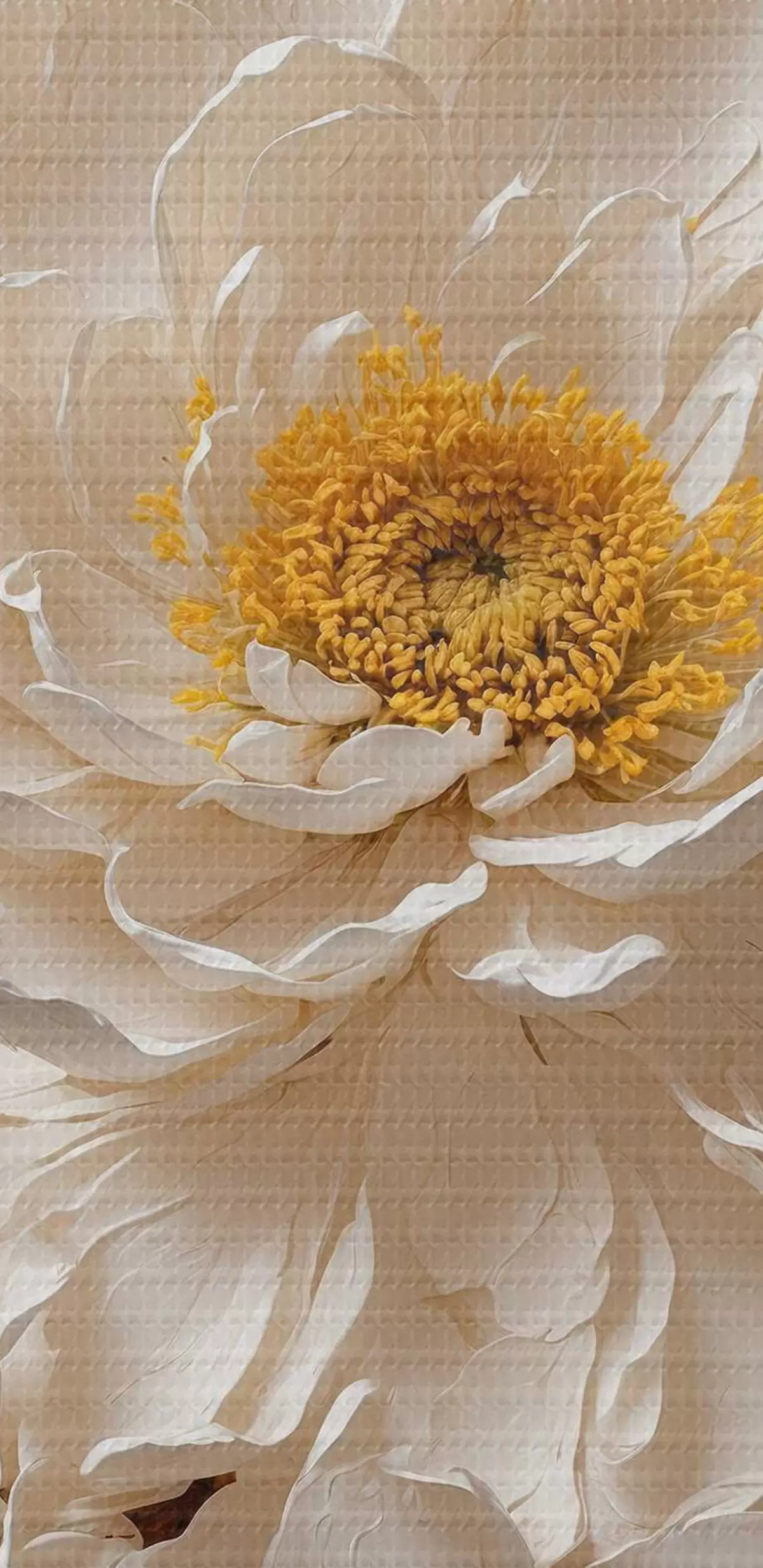 Ronde schilderijen Witte bloem in olieverf op witte achtergrond Nr r40618