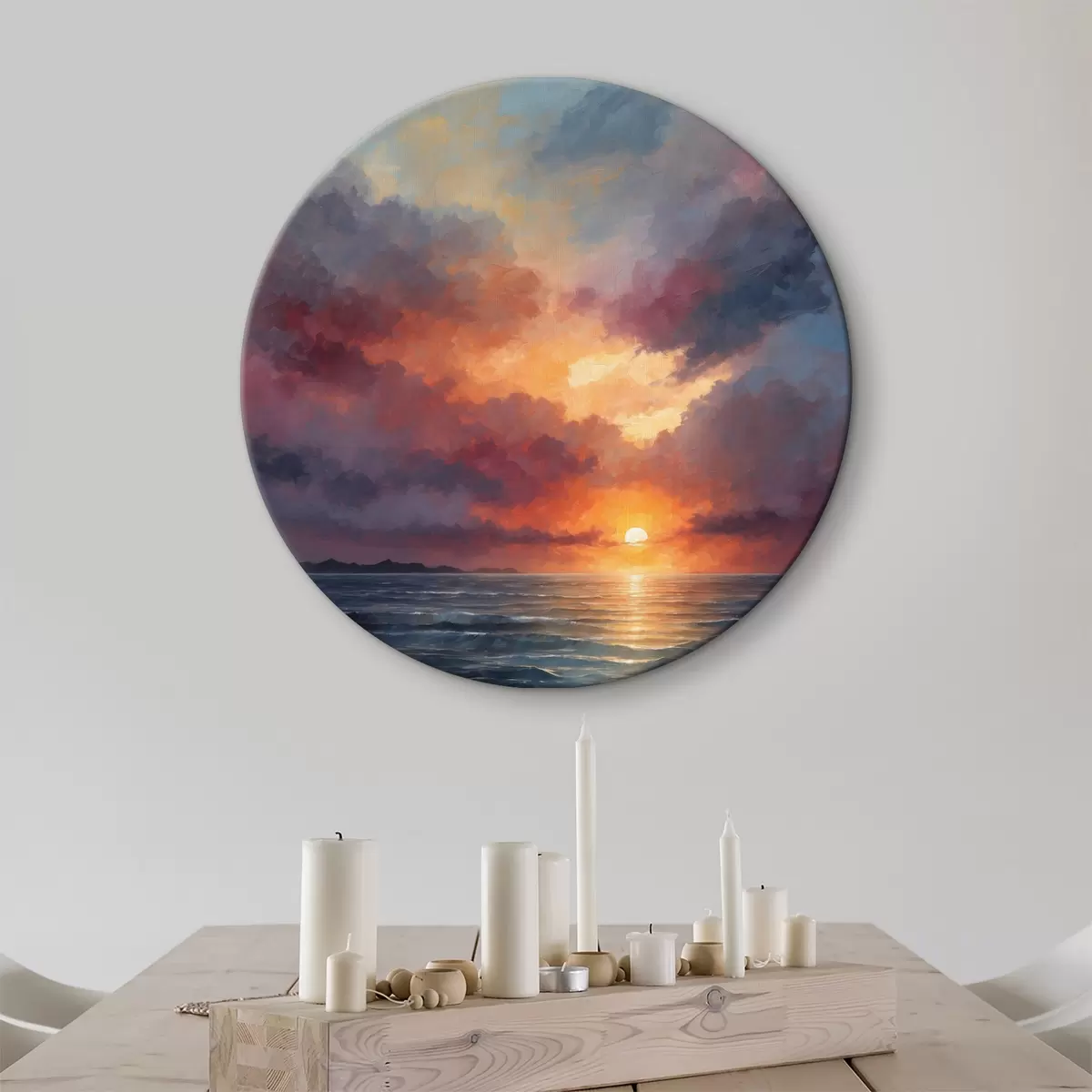 Ronde schilderijen Zonsondergang boven zee Nr r40631