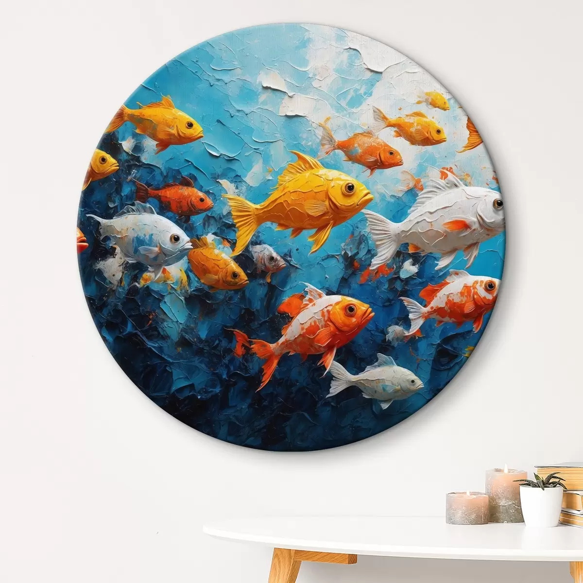 Ronde schilderijen Vissen op een abstracte olieverf achtergrond Nr r40632