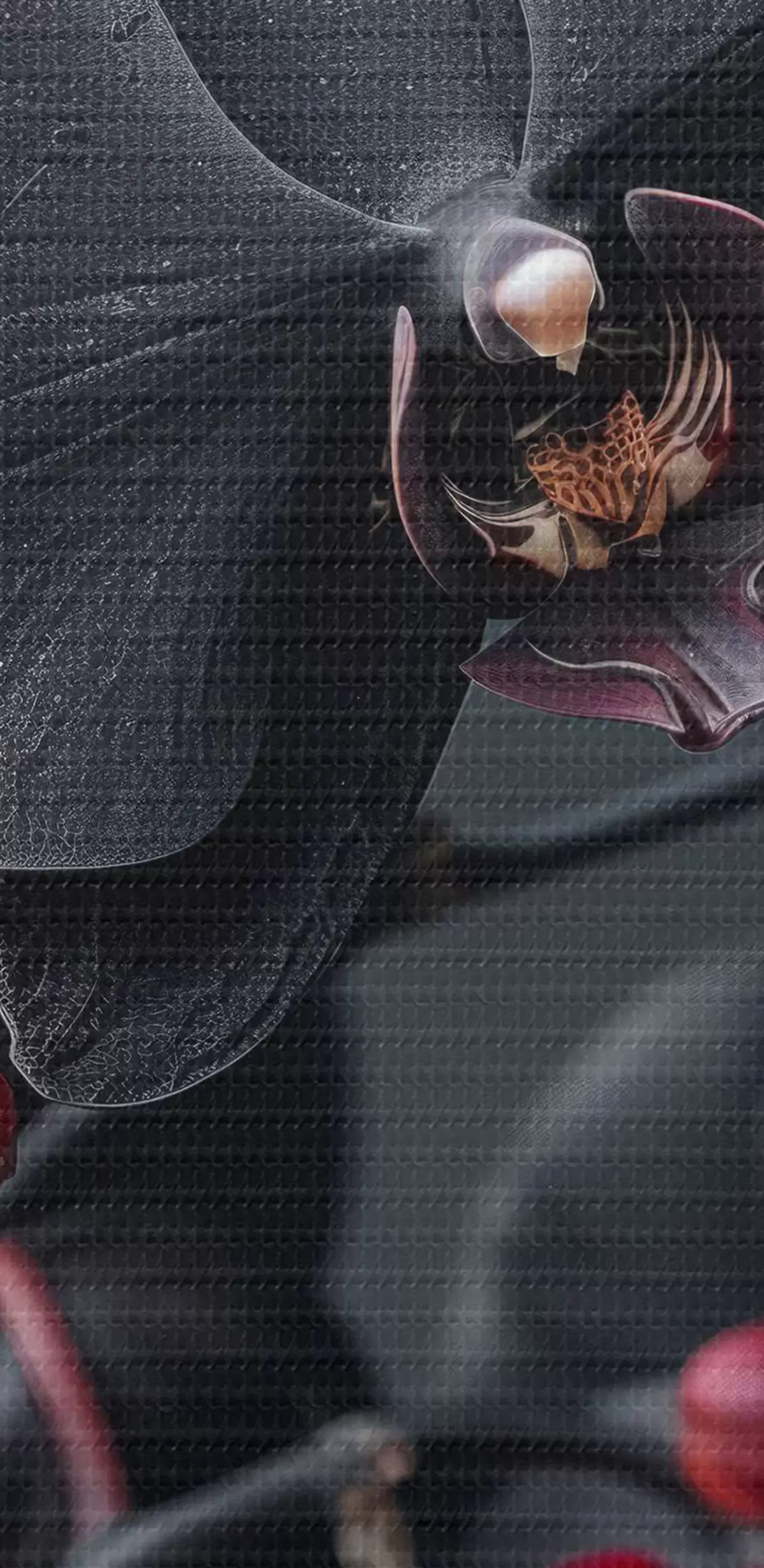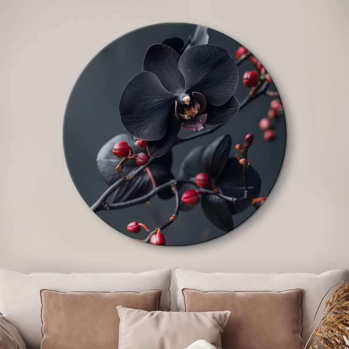 Ronde schilderijen Elegant bloemstuk met zwarte orchidee r40663