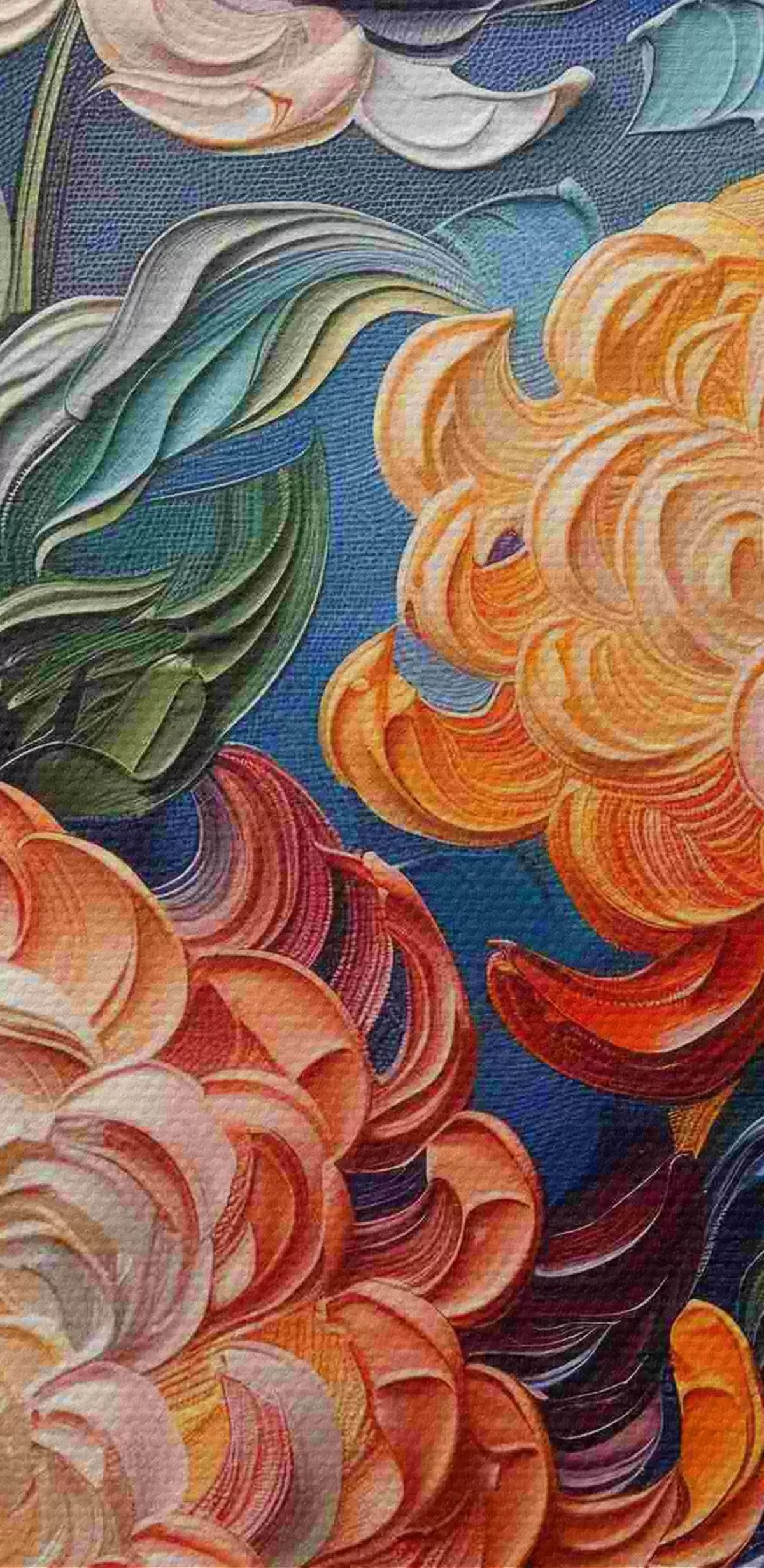 Het schilderij kan direct na ontvangst worden opgehangen. Het schilderij wordt opgespannen op een 2 cm breed houten spieraam.